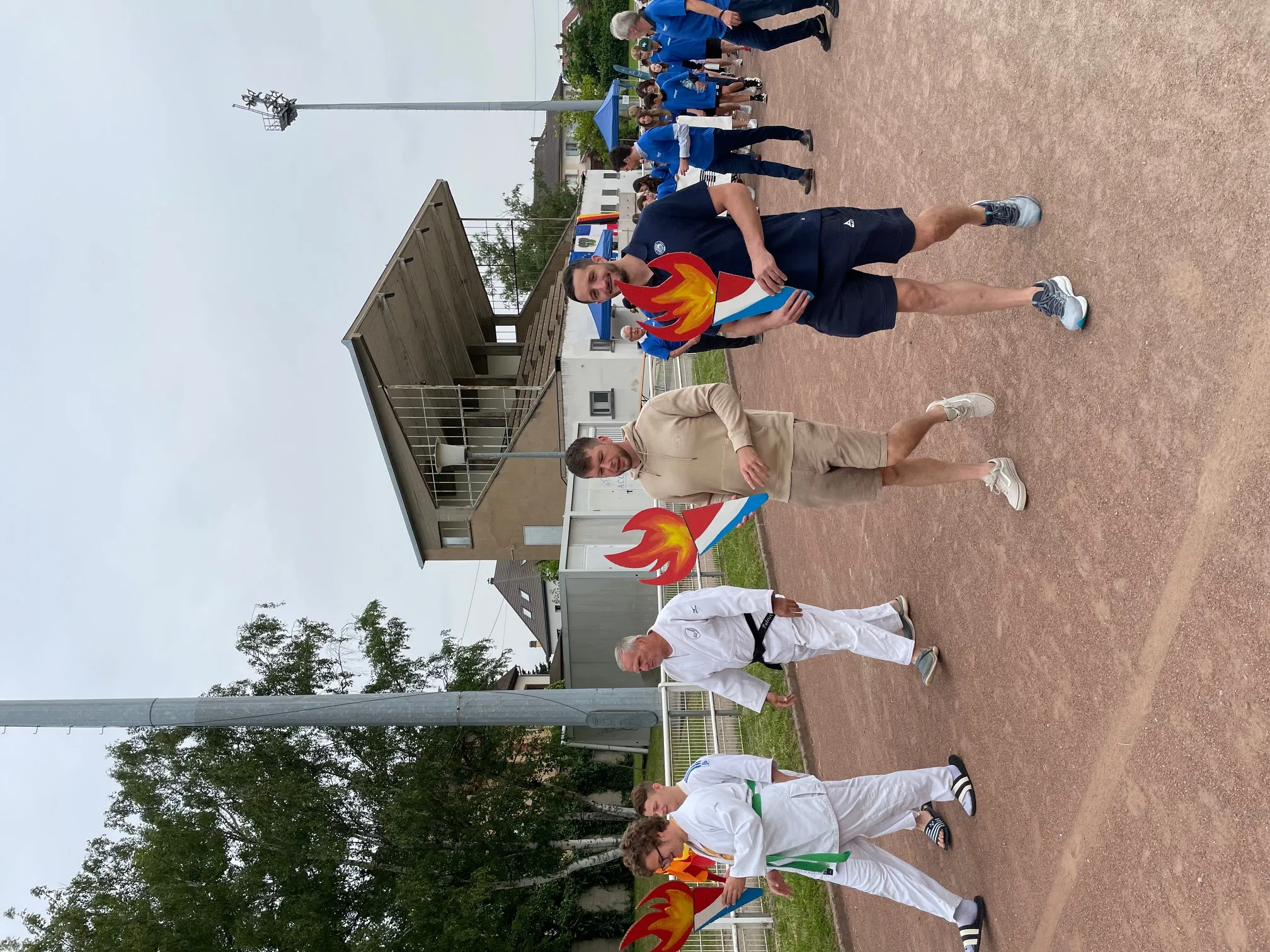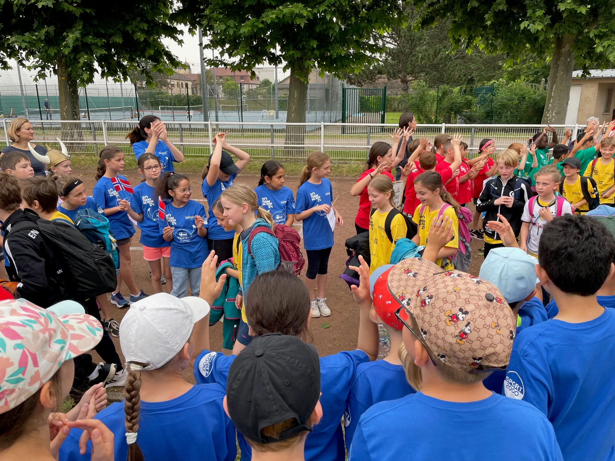 Pour débuter la journée, les valeurs de l’olympisme ont été rappelés aux enfants : espoir, paix, amitié, respect, liberté. Des sportifs sélestadiens sont par ailleurs invités chaque jour pour porter la flamme avec les enfants : ce jeudi matin il s’agissait de deux handballeurs et de deux judokas, champions de France en judo adapté. Lundi, Benjamin Brun, sélectionné en équipe de France de hand fauteuil et porteur de la « vraie » flamme olympique dans quelques semaines, était présent. Pour rendre ces jeux encore plus « mondiaux », deux classes sont venues de Waldkirch, en Allemagne, ville jumelée à Sélestat depuis bientôt 60 ans. Les enfants leur ont réservé un accueil en fanfare car des élèves sélestadiens avaient pensé à ramener tambour et trompette pour mettre l’ambiance.