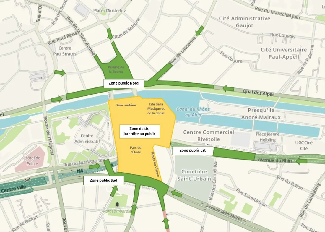 Une zone sécurisée sera mise en place autour de la zone de tir du feu d’artifice. Le parc de l’Etoile à Strasbourg sera ainsi fermé au public le 13 juillet à partir de 14h et rouvrira le 15 juillet vers 14h.