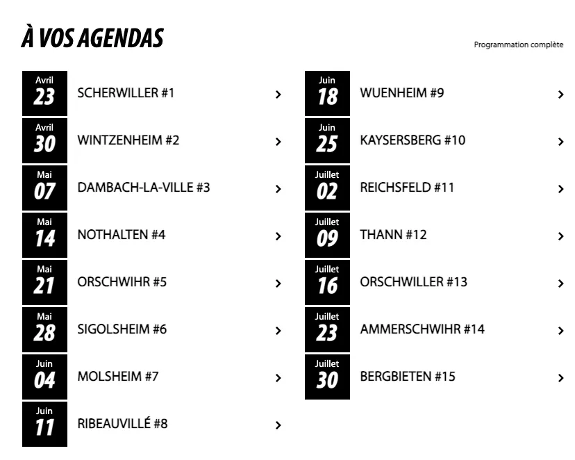Ce n’est pas vraiment un festival, ni une fête de village, ni une simple dégustation, mais le vignoble d’Alsace sera en fête tous les dimanches jusqu’au 30 juillet. 15 dates sont prévues pour fêter les 70 ans de la Route des vins d’Alsace. Il y aura à chaque fois, de 10h à 19h, un bar éphémère, un DJ, des ateliers (à pieds, à vélo, en pleine nature), des tartes flambées, etc. 15 lieux ont été choisis au coeur du vignoble pour accueillir en tout 150 domaines alsaciens.