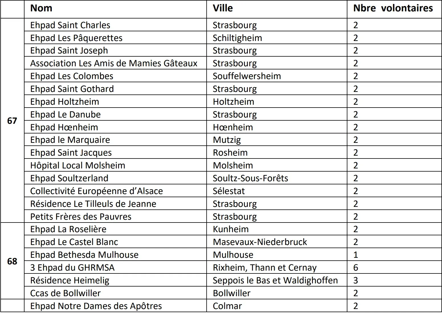 Dès la rentrée de septembre, 16 structures du Bas-Rhin et 9 du Haut-Rhin accueilleront une des volontaires, déjà très attendus par les séniors. Quelles missions pour ces jeunes motivés ? Proposer des animations, faire vivre les structures d'accueil ou encore rendre des visites à domicile pour briser la solitude des personnes âgées et créer un lien entre les générations.