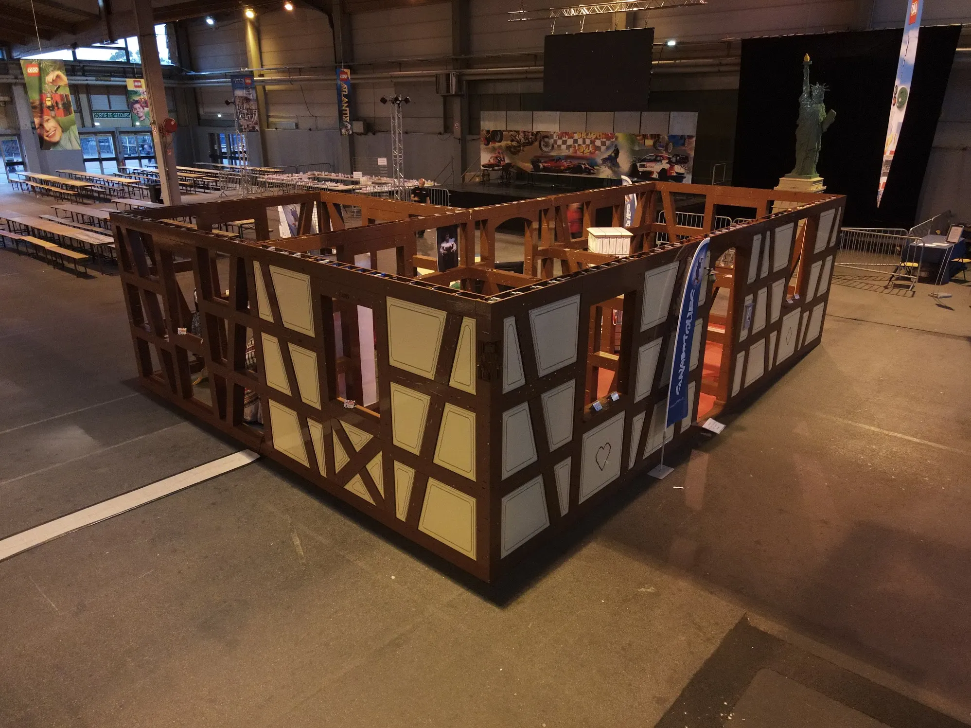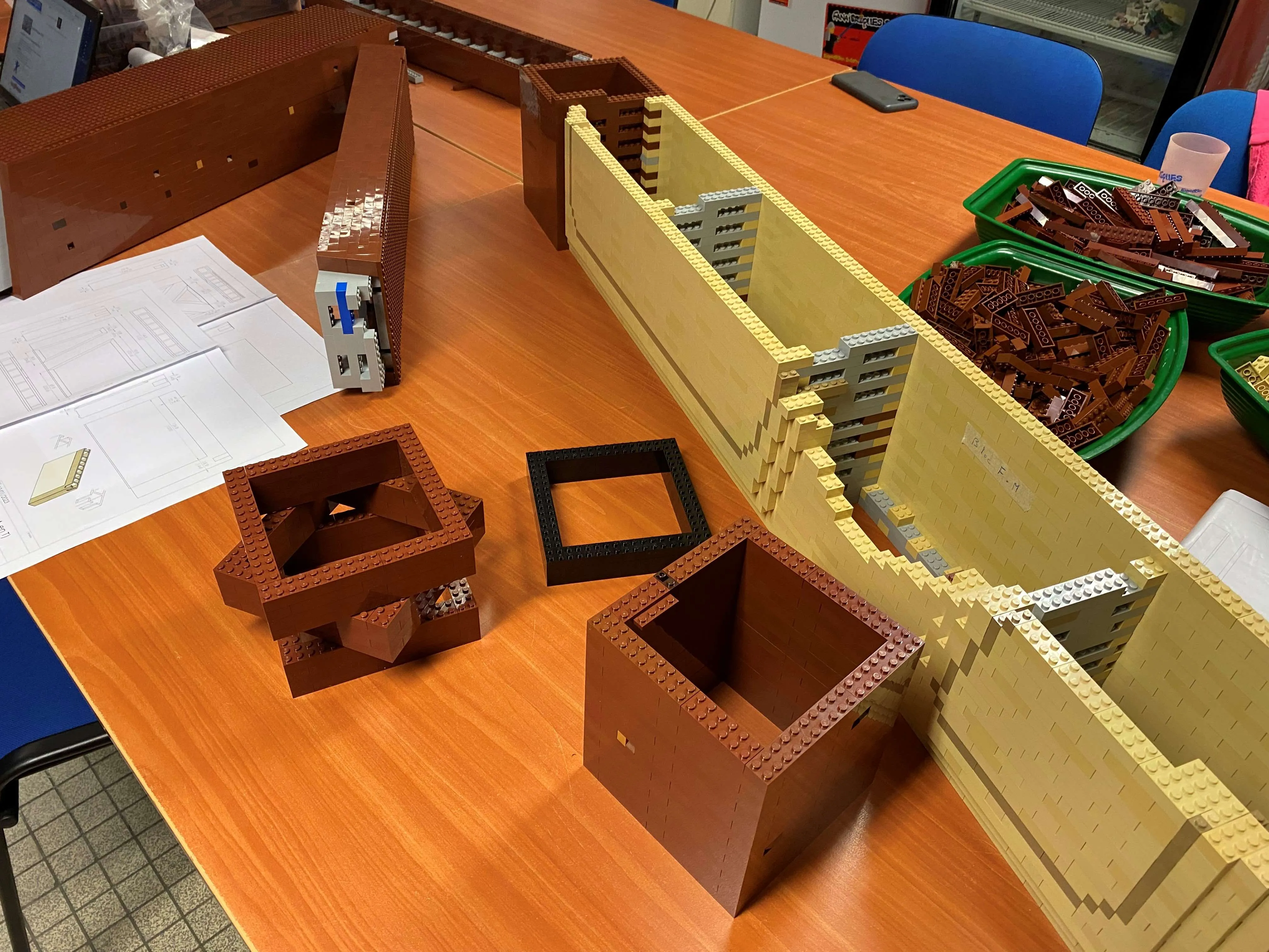 Mais pourquoi une maison alsacienne ? "On avait l'habitude de faire des gros trucs", raconte Benoît, l'un des membres très actifs de Fana'Briques. "On avait fait un canyon de 16 mètres cubes ! On a vu que c'était assez fédérateur. Le défi, ça a été de se dire : et si on faisait une maison dans laquelle on pourrait entrer ? Et si déjà on fait une maison, alors on en fait une à colombages !" Lors d'une de ces soirées où les idées les plus folles fusent, la fine équipe entreprend quelques recherches. "C'est une maison de plaine, sur un seul étage, plutôt petite, comme ça se faisait dans le temps. On préfère une petite maison à l'échelle 1:1 qu'une grosse à l'échelle 1/15e."