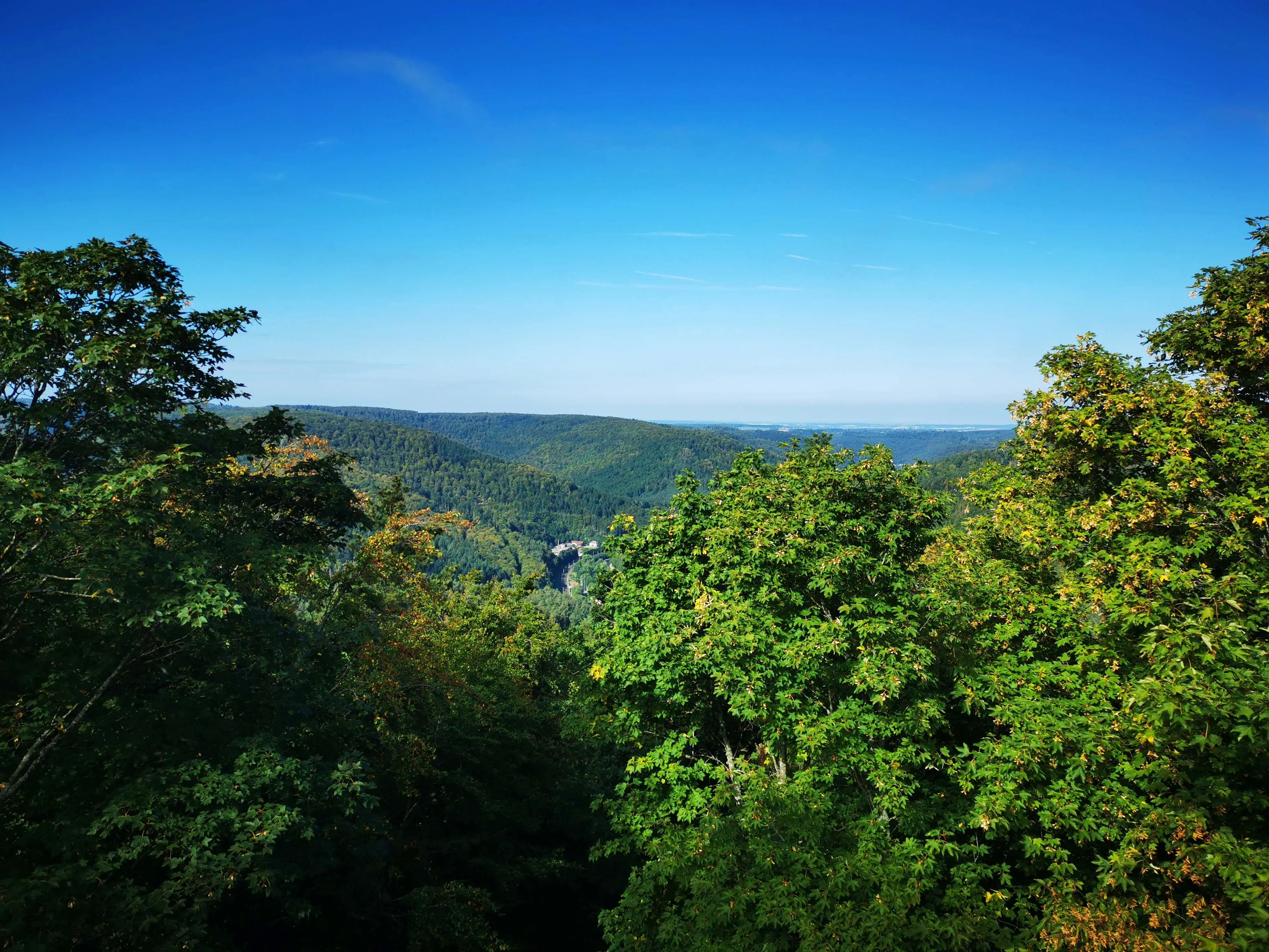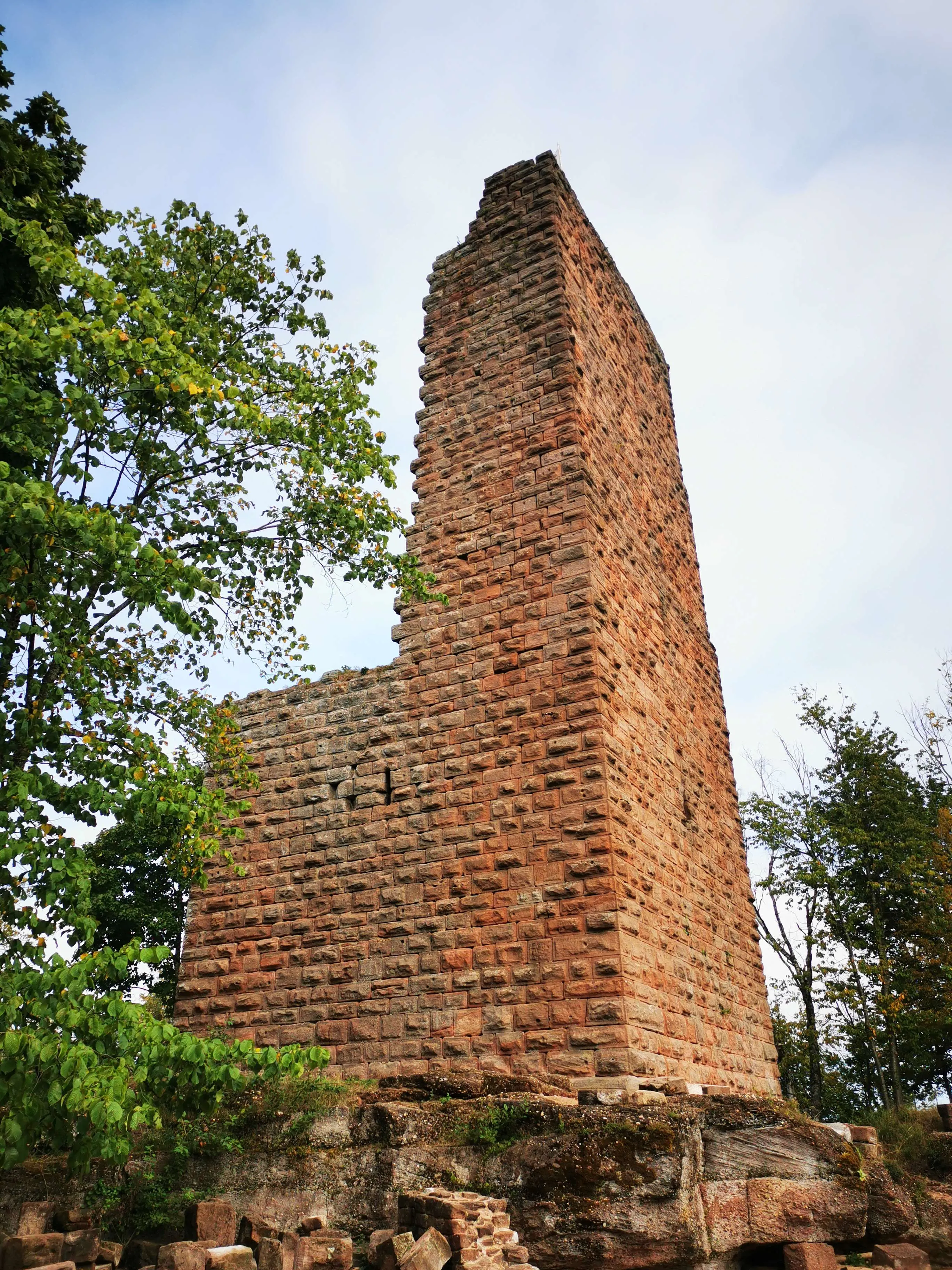La voiture garée, on part pour une petite balade à travers la forêt sur un sentier pas très compliqué. Alors oui, ça grimpe un peu dans la dernière ligne droite, mais promis, ce n'est pas long ! On peut ensuite se promener et imaginer la vie qui pouvait être celle de ce grand château, le deuxième plus grand d'Alsace derrière le Guirbaden. Comme beaucoup de château du genre en Alsace, ses premières pierres ont été posées au 12e siècle. Avant ou après le Haut-Barr qui lui fait face ? A priori un peu après. Les deux sites sont distants de 700m seulement, et les gardes de l'époque pouvaient sans doute se narguer, car la vue était alors totalement dégagée.