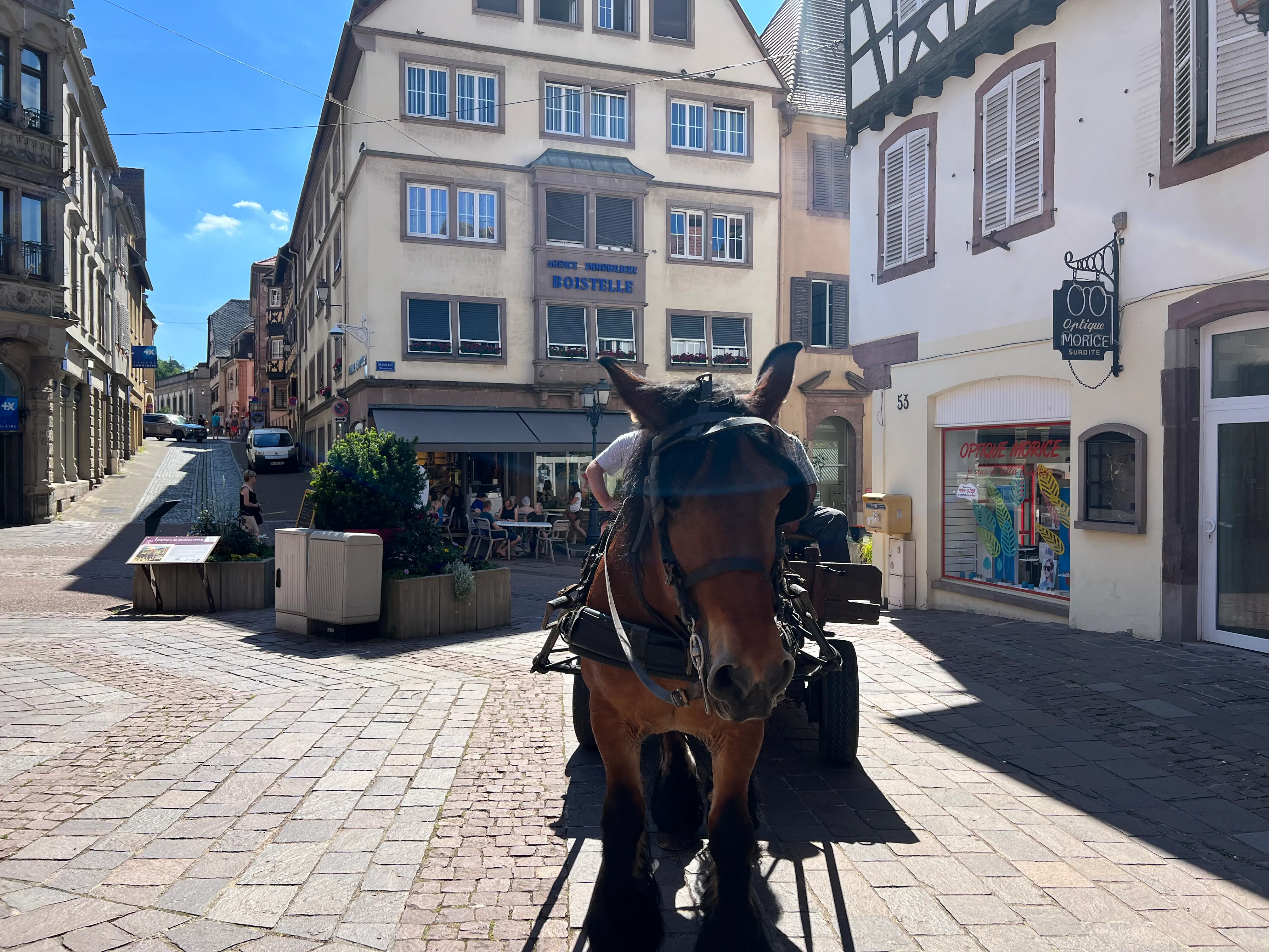 La Ville de Saverne a embauché une jument pour participer à l'arrosage des plantes vertes et fleurs dans le centre-ville. Une belle initiative écologique.