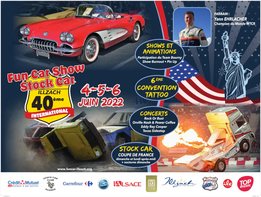 Après deux années d'attente (pas d'événements en 2020 ni en 2021), la 40ème édition débutera ce samedi 4 juin, pour les amoureux de voitures. Vous y découvrirez des voitures "exposées", plus 1 500 véhicules et motos sur les trois jours, et des voitures "en compétition" sur le Stock Car (Coupe de France dimanche et lundi après-midi, et en plus nocturne dimanche soir). Les voitures américaines sont à l’honneur, mais il y a aussi des voitures d’époque transformées. Et puisque cela fait souvent partie de la culture "fun car", 30 tatoueurs participeront à la 6ème Convention tatoo. Autres animations à ne pas manquer : les concerts en plein air !