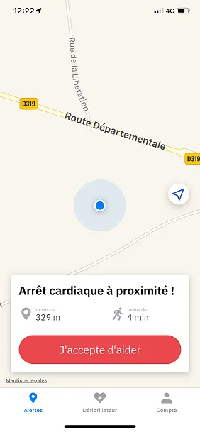 L'application est en place depuis mars 2018 avec plus de 550 000 citoyens inscrits dans 16 départements en France. Une application qui vient en renfort des équipes du SAMU ou des pompiers pour les aider à intervenir. Les utilisateurs situés dans un périmètre de 10 minutes à pied autour de l'accident sont sollicités pour réaliser un massage cardiaque ou rechercher un défibrillateur en attendant les secours. On estime que la survie d'une personne victime d'un arrêt cardiaque, réduit de 10 % pour chaque minute sans massage cardiaque.