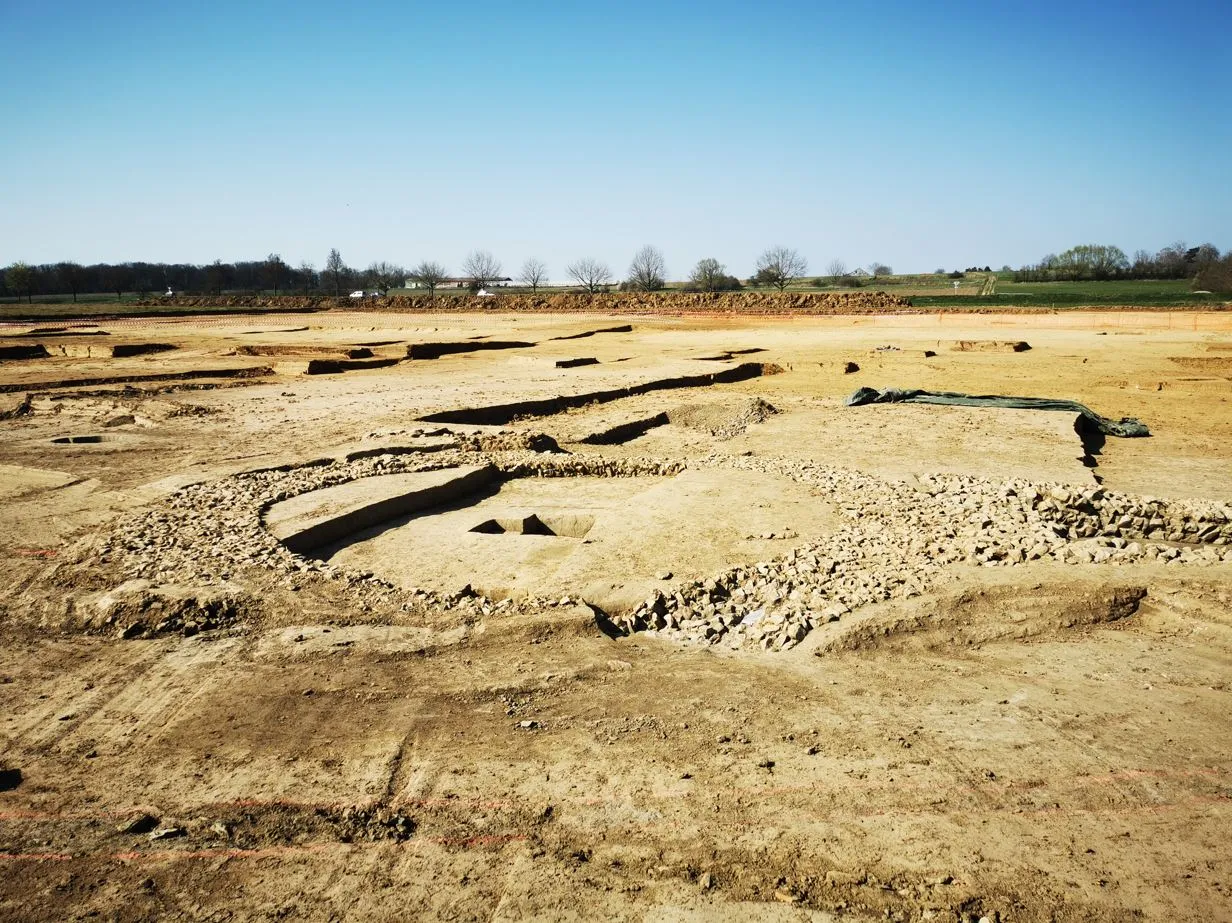 Dans ce secteur, Céline et son équipe s'attendait à trouver des restes du Néolithique, autrement des vestiges d'il y a 7 000 ans plus ou moins. "Nous avons découvert plus de 5 000 ans d'Histoire, de l'époque pré-historique jusqu'à l'époque romaine, qui n'était pas du tout attendue. Des vestiges inédits de cette époque romaine avec des mausolées, des monuments funéraires de taille très imposante puisque le premier fait 8 mètres de diamètre et représentait la tombe d'un artistocrate de la région. Ce type de monument est connu plutôt du côté de la Belgique ou du Luxembourg. On en a du côté de Cronenbourg, mais de forme carrée. Cette forme ronde, c'est inédit en Alsace."