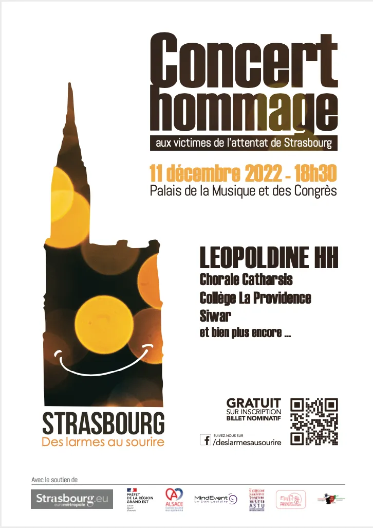 L’association a été créée par des familles : « Lors de ce 11 décembre qui approche, nous souhaitons accompagner l’hommage annuel en créant un événement qui rassemble toutes celles et tous ceux qui partagent les valeurs communes de liberté, de démocratie et de solidarité, et qui soit porteur d’espoir. Pour ne plus pleurer… mais sourire, retrouvons-nous autour d’artistes qui, se sentant concernés par ce drame, nous ferons vibrer ensemble le temps d’une soirée hommage. » Une partie plus officielle d'hommage est aussi prévue : Jeanne Barseghian, maire de Strasbourg, Eric Dupond-Moretti, garde des Sceaux, ministre de la Justice, et Josiane Chevalier, préfète de la Région Grand-Est rendront hommage aux victimes, ce dimanche 11 décembre à 10h45, Place de la République à la Stèle mémorielle.