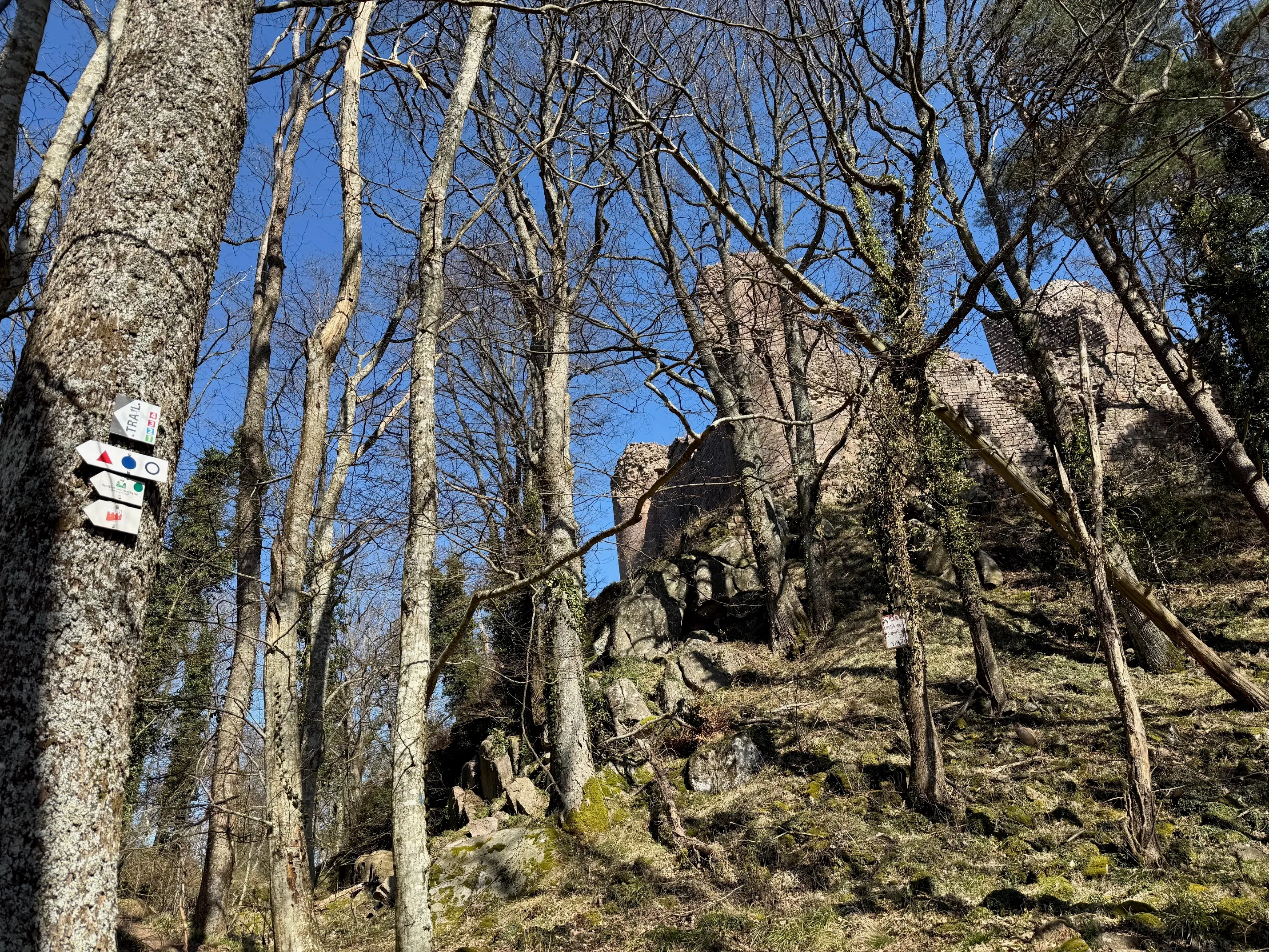 🔵 Le bleu « 10 ficile » (10,5km, 383m+) : ce circuit passe notamment par le Château du Landsberg, point immanquable de Barr.