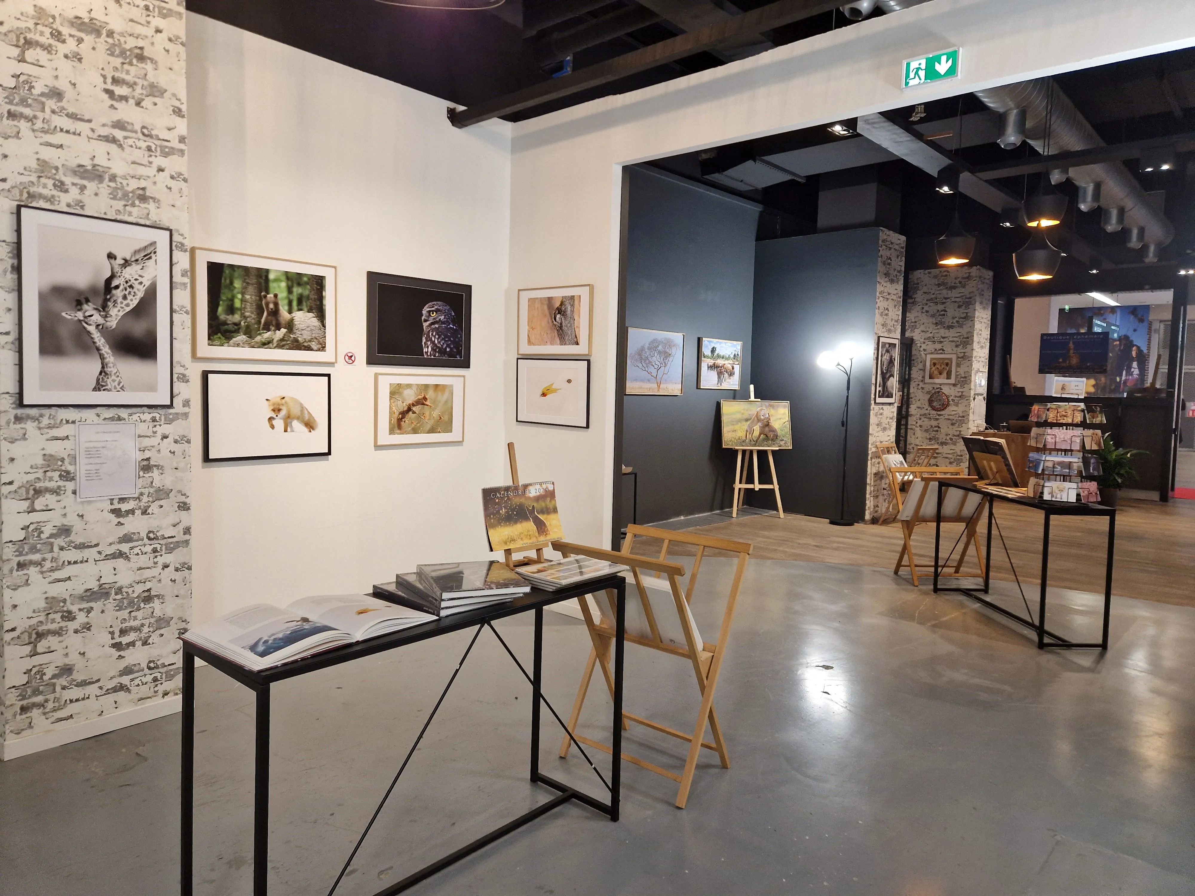 La boutique éphémère expose une cinquantaine de photographies de l'artiste Olivier Hannauer de "La Chouette Photo" et du couple de photographes animaliers Alexandre et Chloé Bès. Ça va de la simple carte postale à 3 € au tirage d'art à 2500 €.