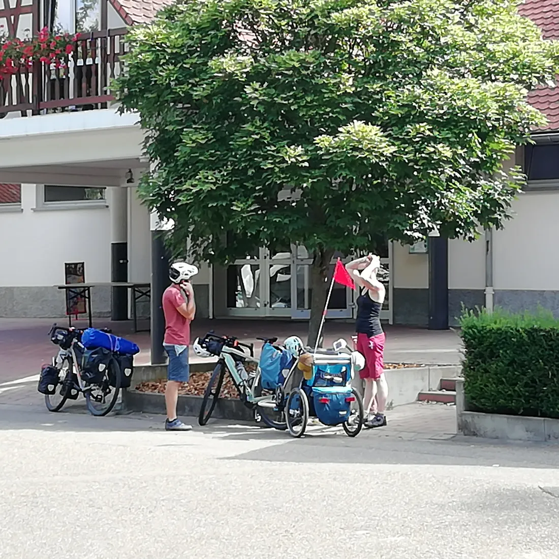 Parmi les quelques Français au camping, il y a Sophie et Batistin, originaires de Grenoble, venus découvrir l'Alsace avec leur fils Charlie. Ils ont décidé de faire le tour de la région à vélo. " On ne connaît pas du tout l'Alsace. On change de camping tous les jours. On suit les écluses et on visite en même temps.", déclare Sophie. Prochaine étape pour la famille : Châtenois et le secteur de Sélestat.