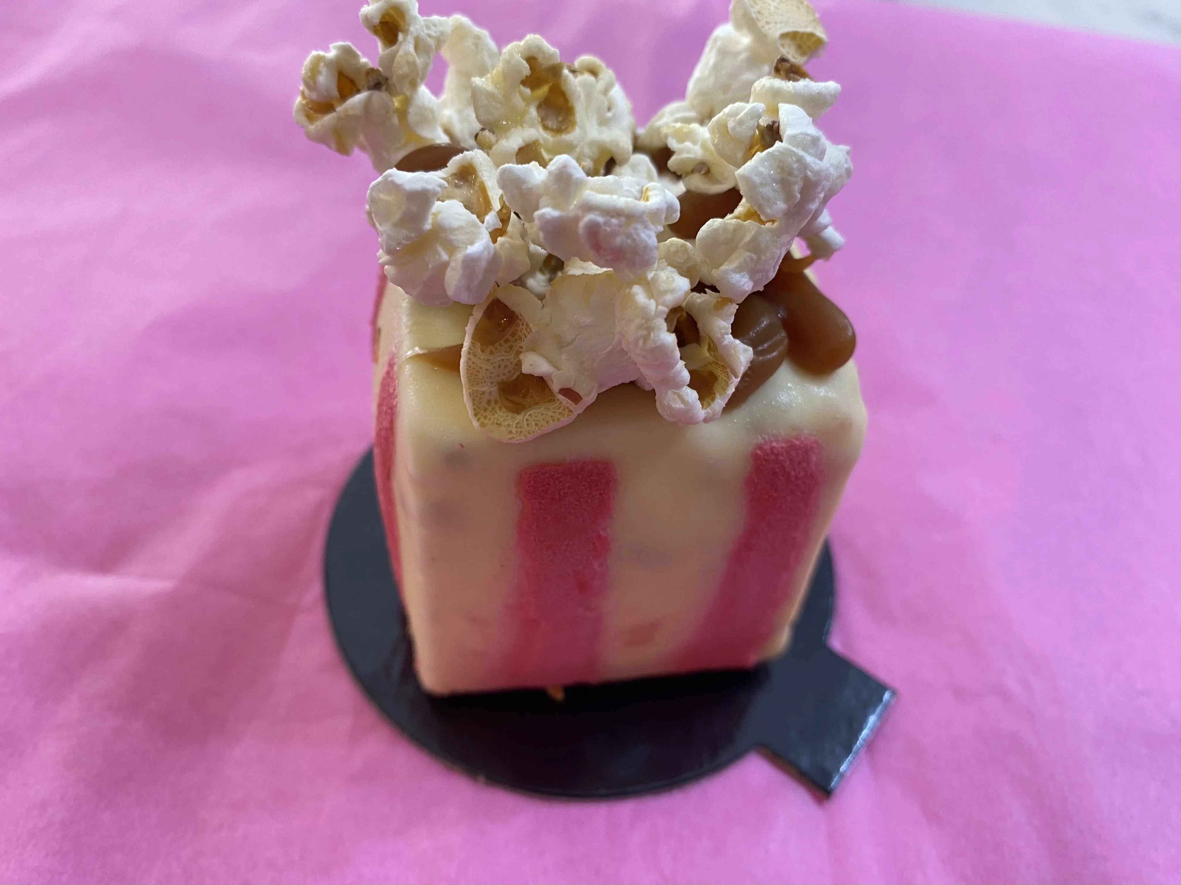 Pour Charly, la noisette sort du lot par son esthétique mais aussi par son goût pas trop sucré. Estelle de son côté a testé un bon nombre des pâtisseries et revient sur les aspects gourmands et alléchants de chaque trompe-l’œil, notamment la fraise, la framboise et la pistache. Anne Sophie, notre rédactrice en chef, a préféré les pop-corns « j’aime le côté régressif, avec le cornet et le caramel. La texture est crémeuse et gourmande ». Pour finir, Nono a trouvé les gâteaux très beaux, il a même été surpris par la légèreté et les textures qui restituent parfaitement le goût de chaque fruit. Du côté des stagiaires, pour Sara et moi, notre coup de cœur est attribué au citron, "frais et doux à la fois".