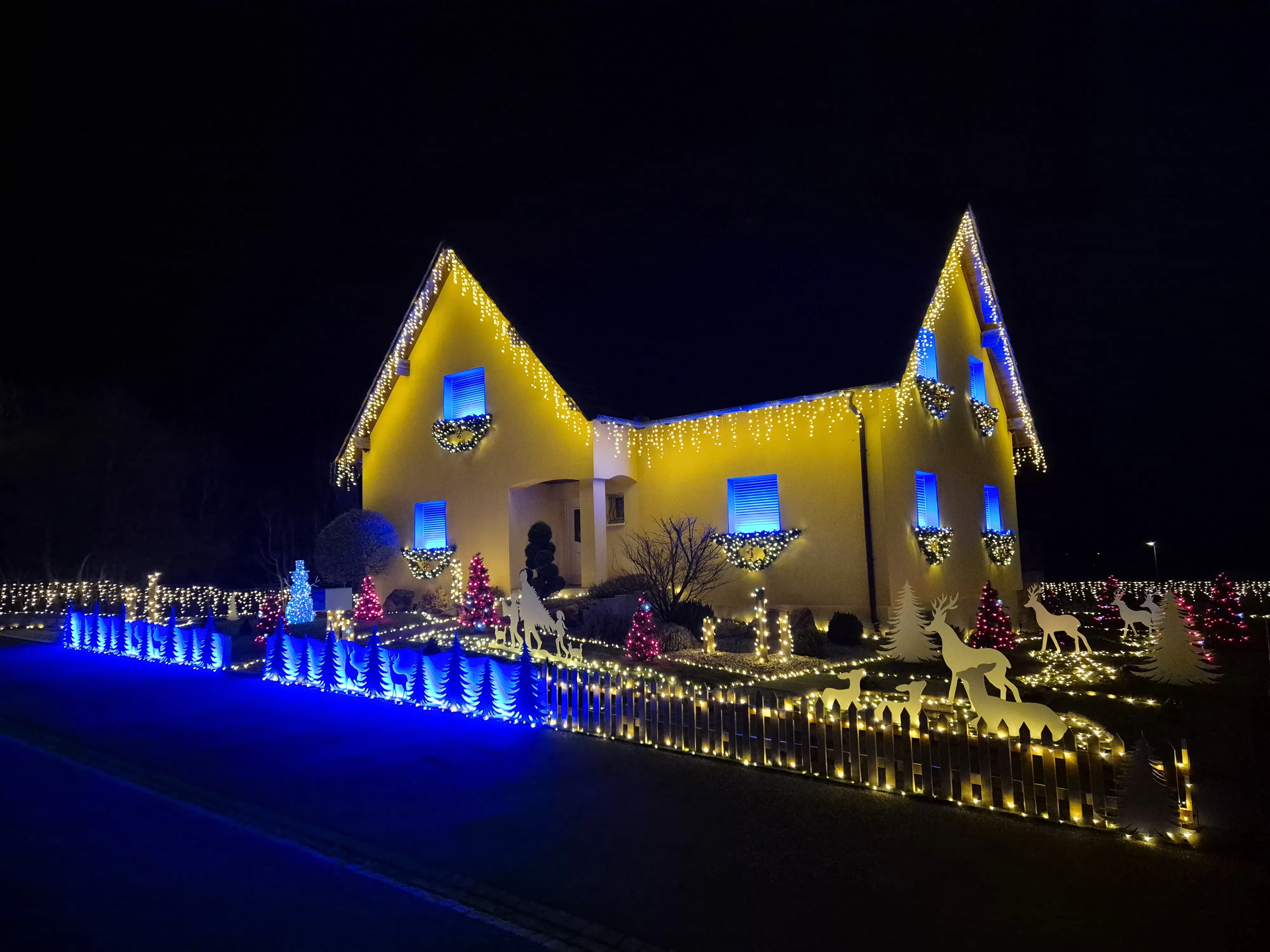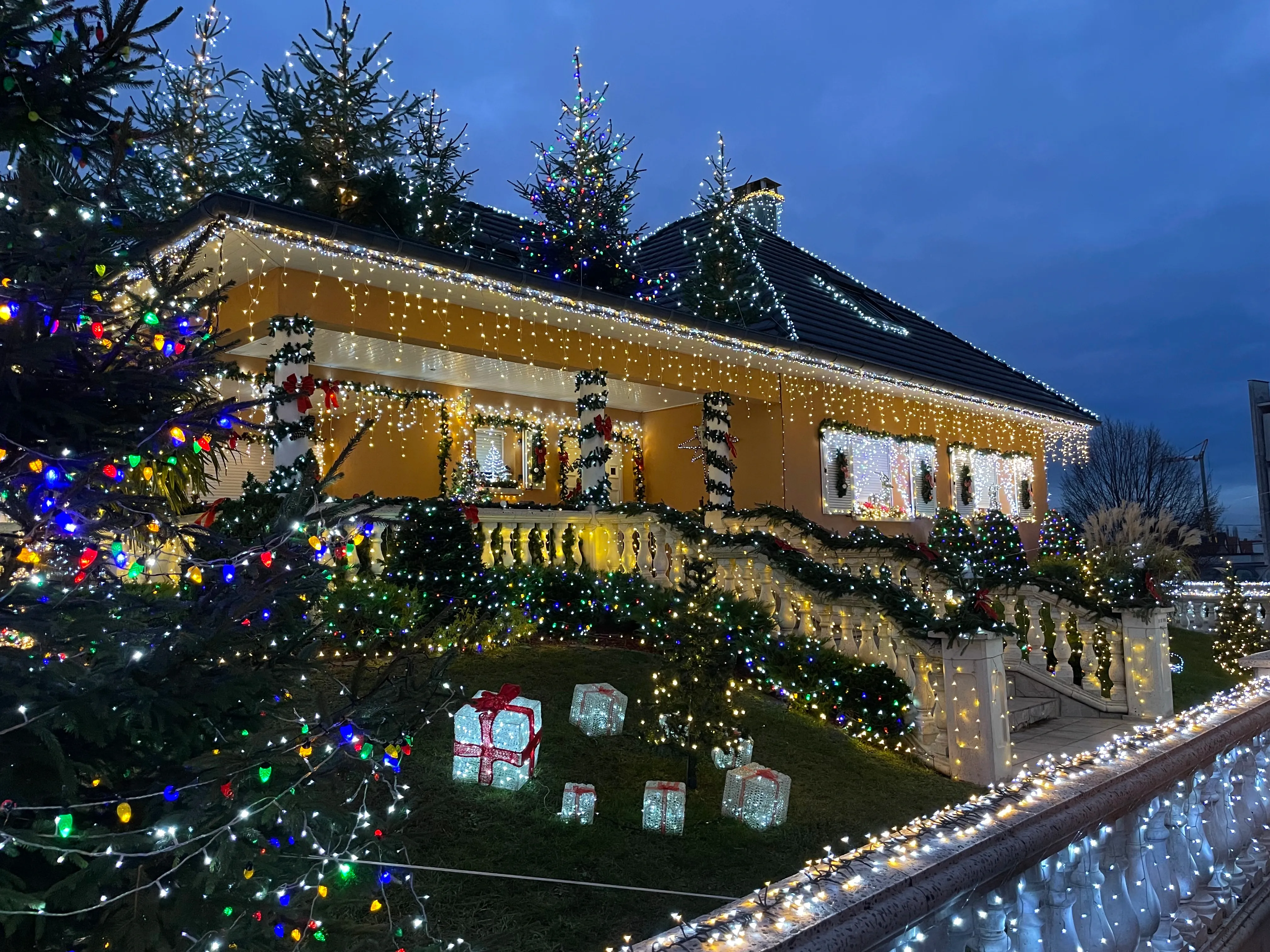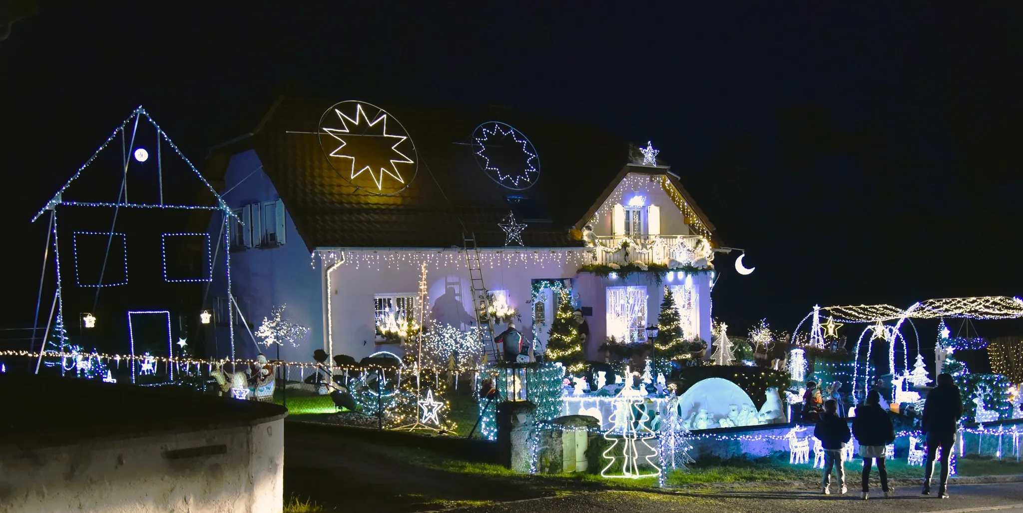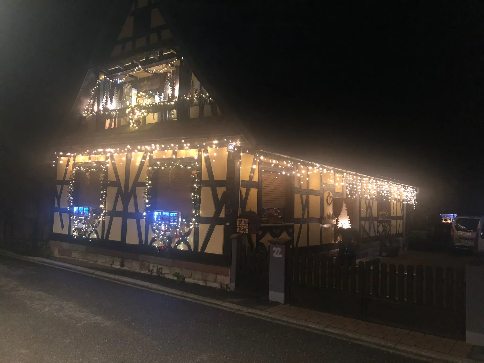 « On n’en fait jamais assez pour Noël » : qui n’a jamais prononcé ou entendu cette phrase ! L’Alsace, c’est bien connu, est le pays de Noël, avec ses marchés de Noël bien sûr, mais aussi ces particuliers qui illuminent leur maison, leur jardin, leur balcon pour célébrer comme il se doit cette merveilleuse fête. Du côté de Haguenau tout d’abord (rue Alcide de Gasperi), nous avons été émerveillé par le travail d’une famille qui a décoré sa maison « du sol au plafond » (si vous observez bien, il y a même des sapins au 1er étage). Le Père Noël ne pourra pas louper cette maison.