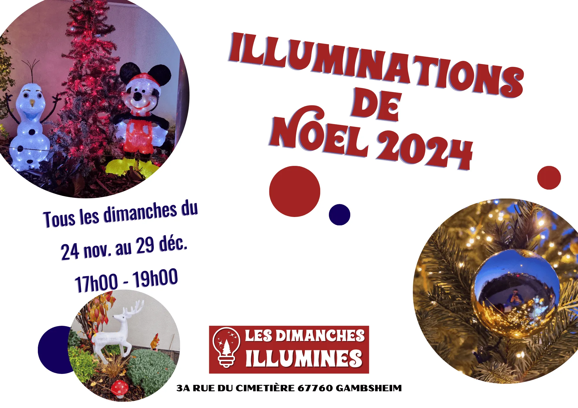 A Gambsheim (rue du cimetière), Luc Deplanque a crée « Les Dimanches Illuminés » durant tout le mois de décembre : « Pour Noël nous avons mis en place un véritable parcours féérique, illuminé et multisensoriel, ouvert à tous et gratuit, les dimanches du 24 novembre au 29 décembre, de 17h à 19h. Ce projet, qui nous a demandé a moi et mon conjoint, plus de 100 heures de travail depuis fin octobre, offre aux visiteurs une expérience unique mêlant lumières, musiques, odeurs et saveurs. »