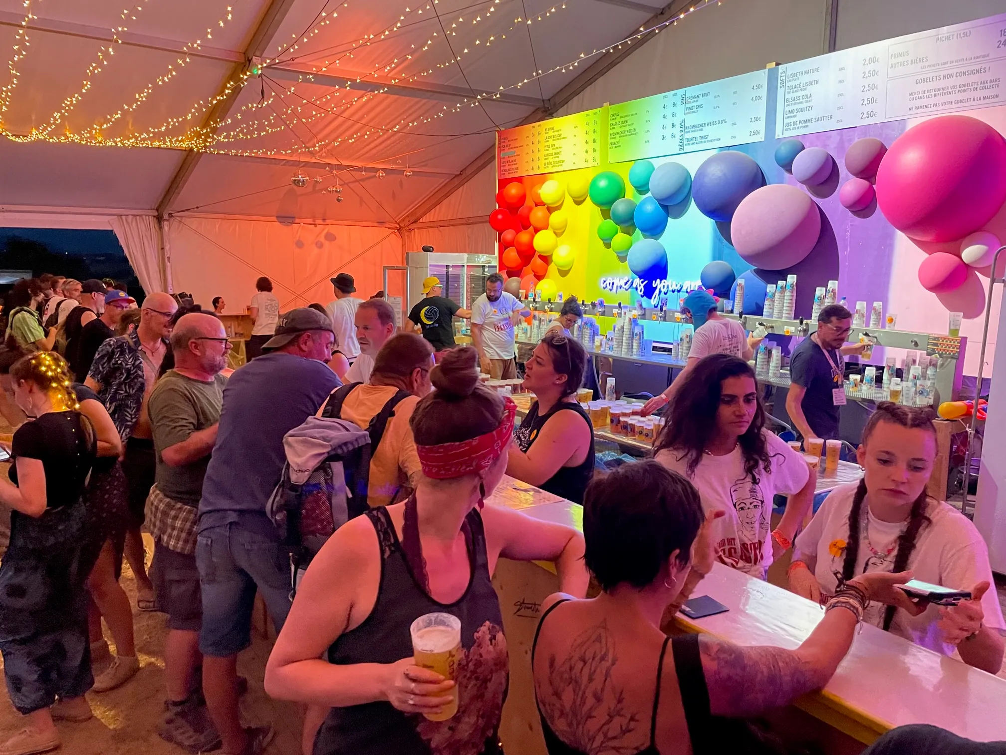 Un autre challenge de l’équipe de Décibulles est de décarboner le site. Cette année pour la première fois, le site était entièrement relié à l’électricité via des transformateurs Enedis et il n’y a eu aucun souci de ce côté-là. « C’est une grosse fierté », rajoute le directeur de Décibulles. Autre tendance : l’autosolisme est en perte de vitesse. Le « parking C », habituellement ouvert, n’a pas été nécessaire pour cette édition. Il y a donc eu moins de voitures sur le site, ce qui est une très bonne chose. L’équipe de Décibulles a amplifié le nombre de navettes et crée plus de lignes, notamment vers Strasbourg, Colmar et Mulhouse. Le camping était lui aussi un peu moins dense cette année. La faute à la chaleur ? Il faut dire que le dimanche était tropical sur la colline du Chena : les festivaliers ont pris d’assaut les points d’eau et les 50 sortes de bière (avec modération). Concernant les 170 000 gobelets (non-consignés pour la première fois), il s’agissait d’une expérience : « il nous faudra un peu de temps pour peser le pour et le contre », précisent les organisateurs.