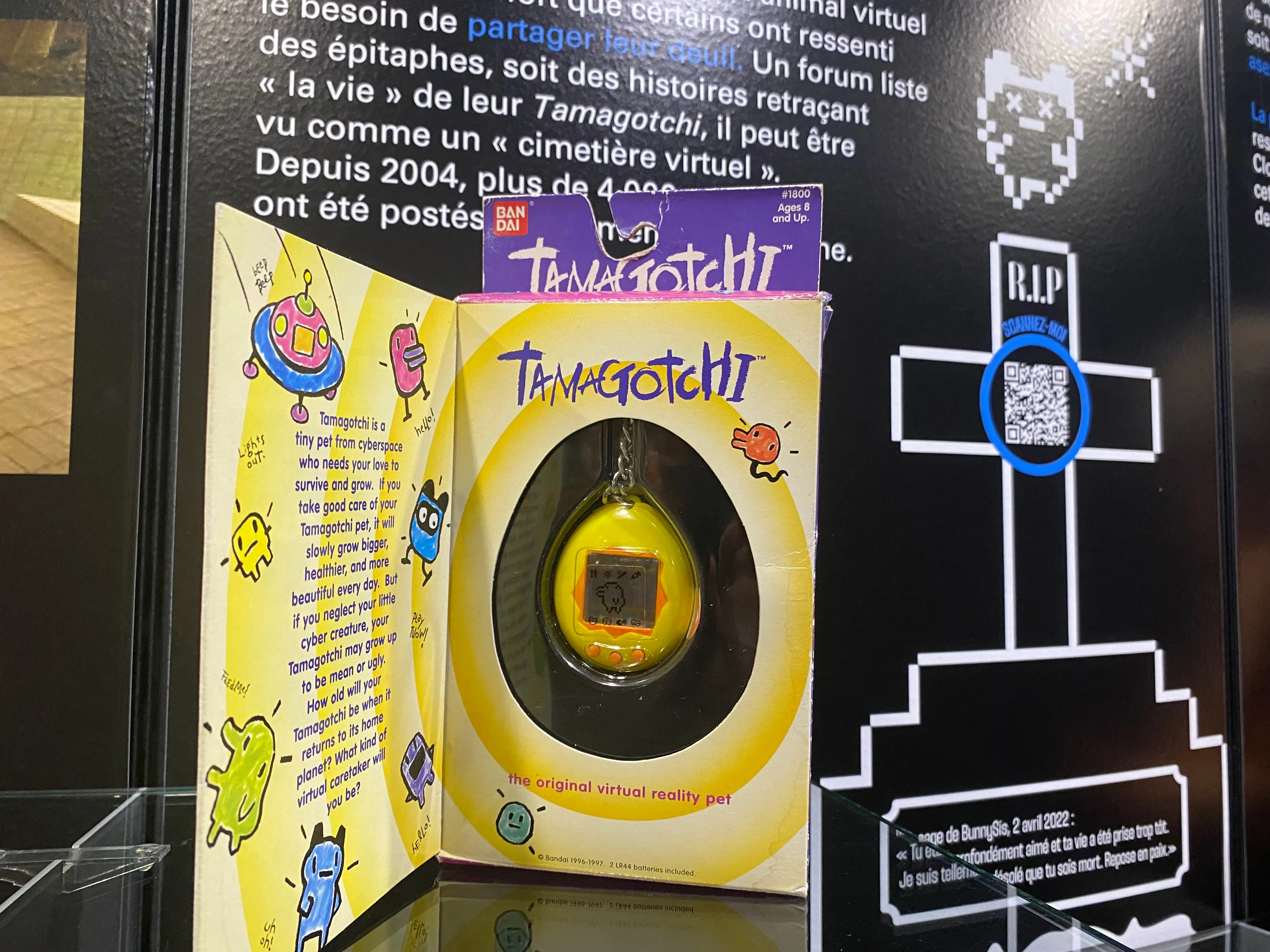 Chose assez surprenante, on retrouve dans les vitrines de l’exposition le célèbre Tamagotchi ! Vendu dans les années 90 au Japon, ce jeu était surtout utilisé par des enfants de 3 à 6 ans. « A cet âge-là on ne différencie pas le virtuel du réel. Le Tamagotchi est un petit animal virtuel qu’on vient nourrir et qui vient à mourir. On sait que ça a eu un impact psychologique sur certains enfants », détaille Marion Wendling. Le Tamagotchi a aussi un impact sur les adultes ! Le musée du jouet de Colmar a mis un QR code qui permet d’accéder à un cimetière numérique de Tamagotchi.