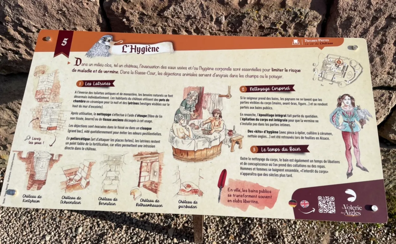 Autre nouveauté, un parcours de visite amélioré et ponctué de 14 panneaux illustrés. Ces panneaux illustrés par Christophe Carmona et écrits par Thierry Mesnig ont été installés dans un but pédagogique et éducatif. Ces panneaux ont été installés pour valoriser le patrimoine castral des ruines du château de Kintzheim classées monument historique en 1964, qui, jusqu’ici n’étaient pas mises en valeur.