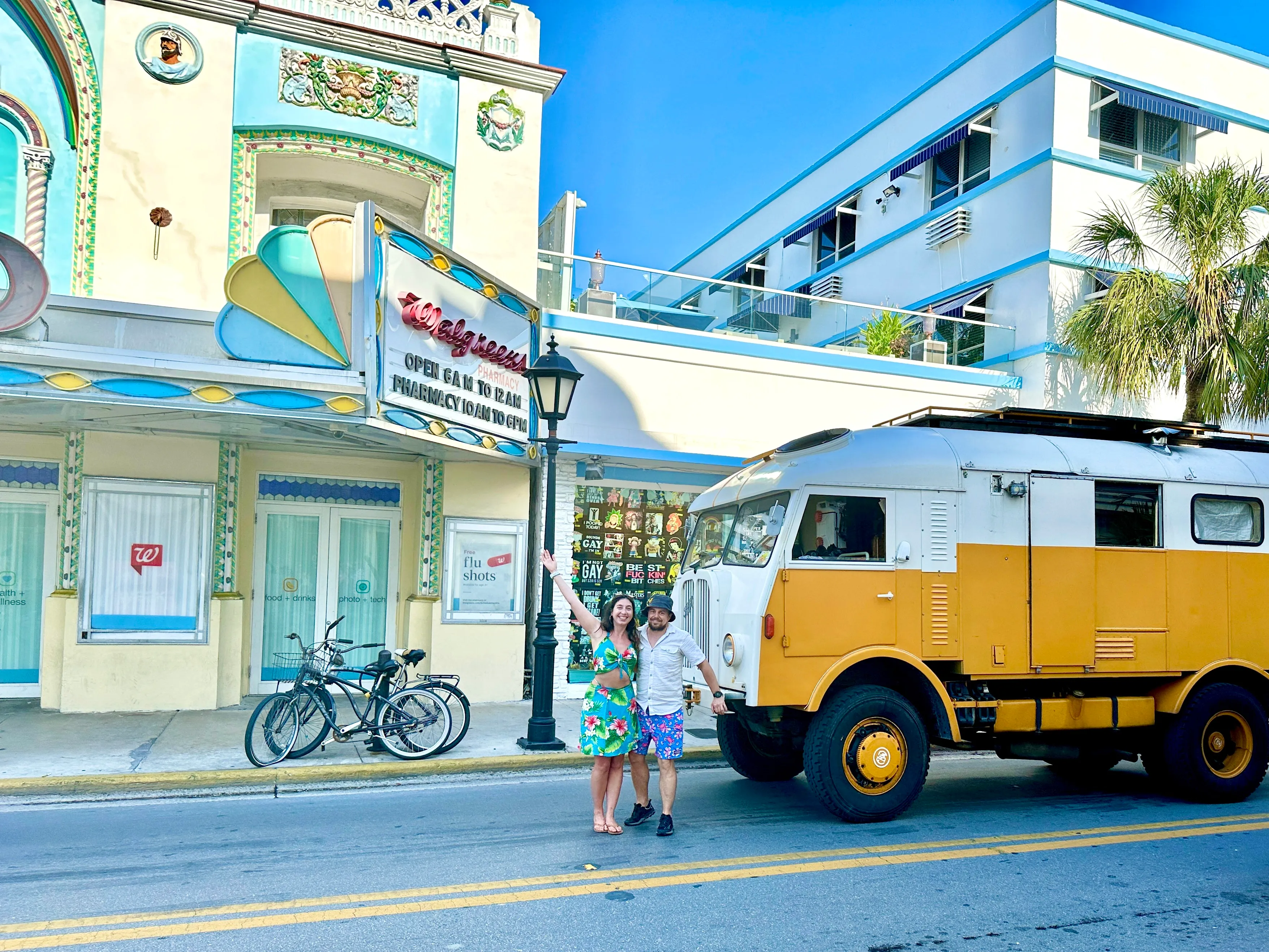 Woody est en pleine forme, il a déjà plus de 20 000km, et toujours à 50km/h max. Il a eu peu de problèmes techniques, le câble d’accélérateur qui a lâché et que nous avons pu réparer sans soucis et une fuite d’huile sur une conduite en cuivre qu’un garagiste nous a gracieusement réparé. On a eu la chance de rencontrer deux anciens mécaniciens de l’armée américaine lors du rassemblement de camions vintage en Floride. Ken, 75 ans, et Andy, 82 ans, nous ont invités dans leur atelier pour faire une révision tous ensemble, un incroyable moment de partage d’expérience dans la bonne humeur. Nous avons pu faire des vidanges, nettoyage de filtre, graissage, inversion des roues, et d’autre petites réparations. L’entretien de Woody est super important pour voyager longtemps.