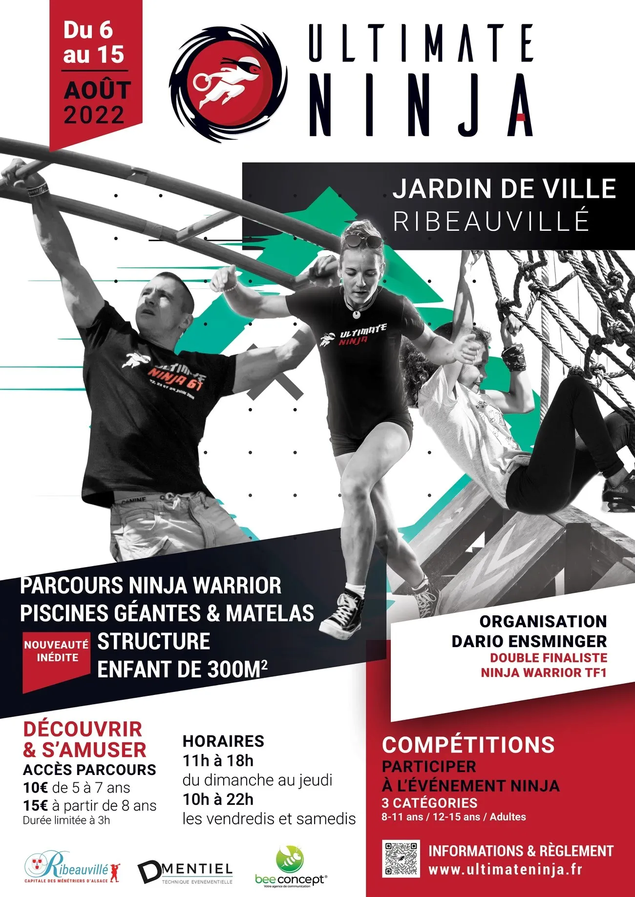 L’événement est crée, monté et organisé par Dario Ensminger, double finaliste de l’émission « Ninja Warrior » sur TF1 et surnommé le Pompier au grand cœur. Dario a imaginé 2 000 m2 de parcours ludique et professionnel, avec des matelas, des piscines, des zones pour enfants (dès 5 ans) et des murs de franchissement ! L’accès au parcours est libre mais il y a aussi des défis enfants (plus de 8 ans) et adultes.