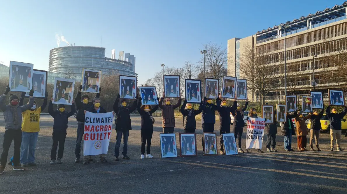 🔴[ACTION] @EmmanuelMacron est coupable de sabotage climatique ! Nous sommes devant le Parlement européen pour dénoncer son bilan #climat et social désastreux, alors que le président vient inaugurer la #PFUE2022. Nous montrons son vrai visage 👇#MacronGuilty pic.twitter.com/4miX7Zy5Pb