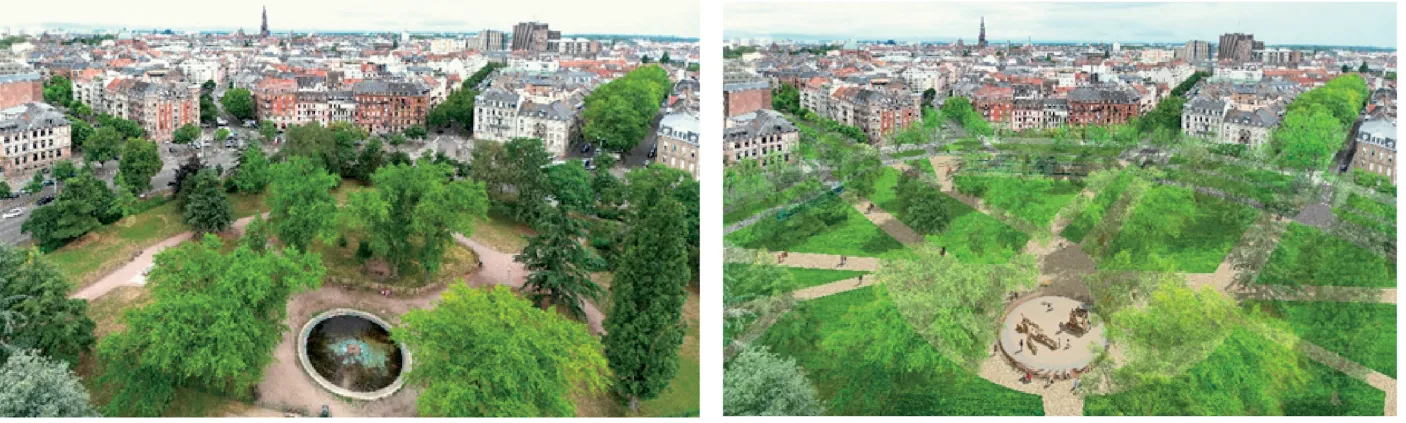 Place de Haguenau : Aujourdhui giratoire autoroutier, la place sera transformée en parc métropolitain au cœur d'une agglomération végétalisée. Le parc fera plus de 16 hectares soit deux fois le parc des Contades. Ainsi Schiltigheim sera relié à Strasbourg sans avoir à traverser une route