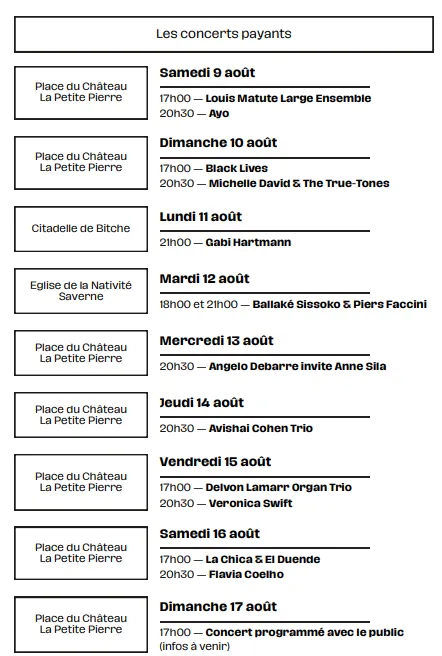 Au grès du jazz 2025 s’annonce comme une édition audacieuse, solidaire et pleine de surprises. On vous donne rendez-vous à La Petite Pierre cet été pour une expérience musicale unique au cœur des Vosges du Nord.