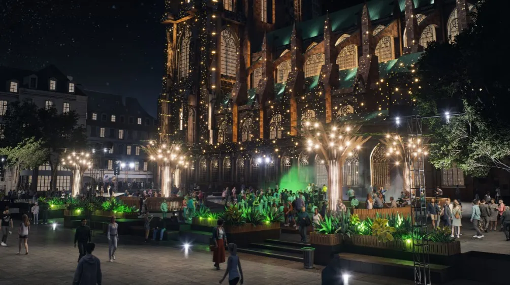 Dans cette scénographie, plusieurs arbres artificiels feront office d’îlots sur lesquels les visiteurs pourront déambuler et s’installer. Le soir des illuminations feront vivre cette place avec bien sûr, des projections sur la cathédrale. Les week-ends, plusieurs activités seront proposées tout au long de la journée, avec en particulier des concerts les samedis soir. Le premier se tiendra le samedi 5 juillet, jour de l’ouverture de ce mini-village immersif.