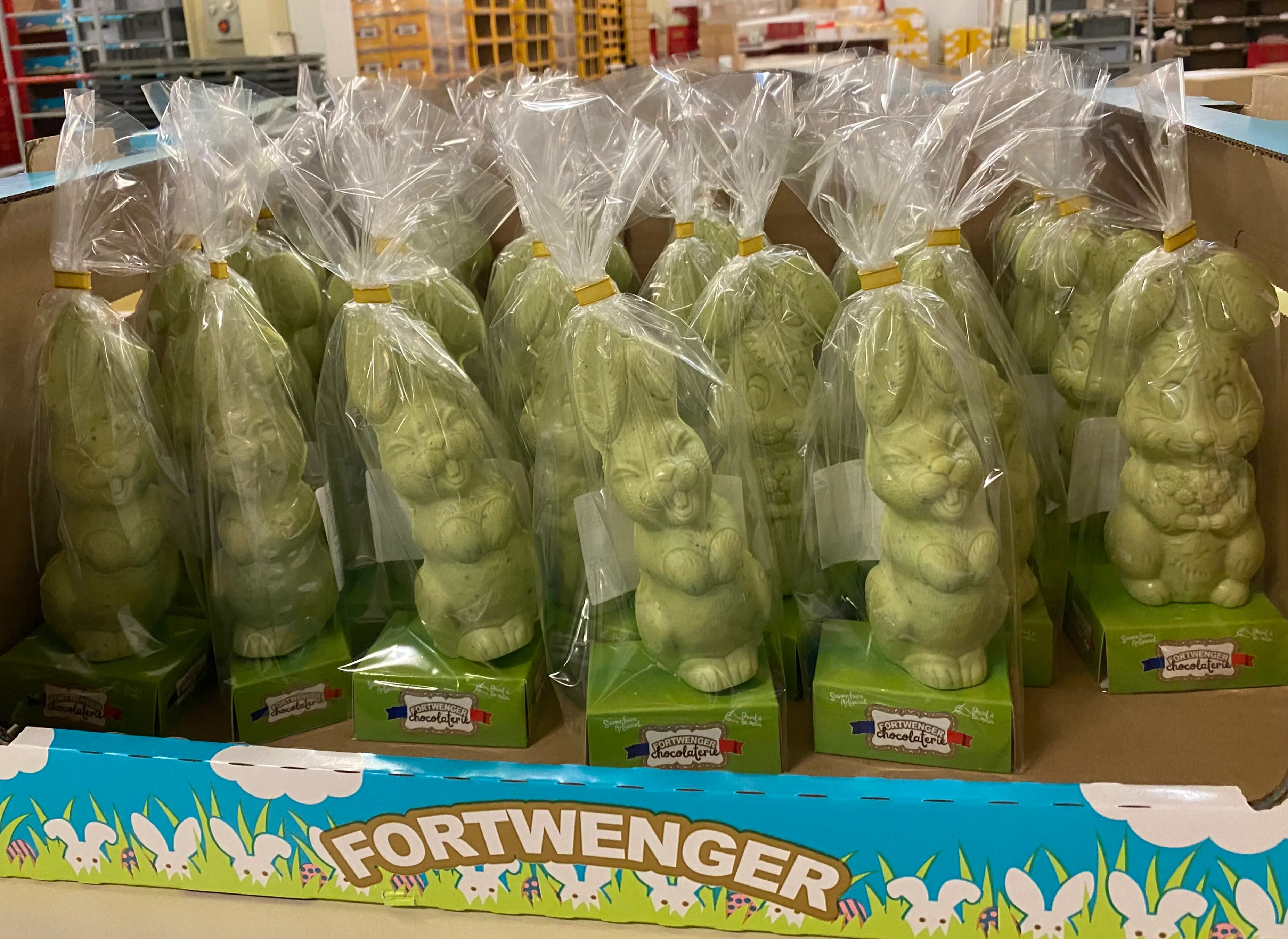 La préparation du rush de Pâques Fortwenger Chocolaterie produit 150 tonnes de chocolat à l’année, et la période de Pâques est bien évidement très importante. « C’est l’effervescence tout se prépare ! », lance Steve Risch. Nouveauté qui fait fureur : le lapin Dubaï style. Il s’agit d’un petit lapin vert au goût du célèbre dubaï chocolate. Il devait être vendu en quantité limitée, mais au vu de son succès Fortwenger Chocolaterie a décidé de continuer la production.
