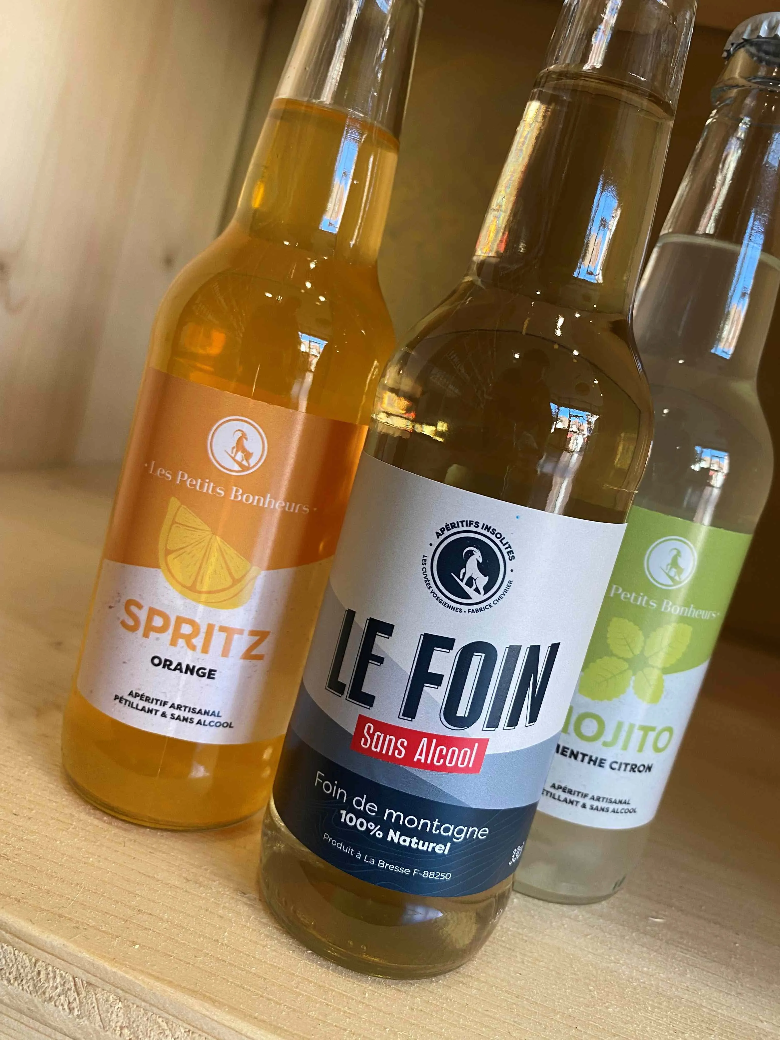 Dans un coin, Lucas n'a pas oublié les apéritifs sans alcools, et il a bien fait car, depuis l'ouverture le 17 août, le succès est totalement au rendez-vous avec ces produits fabriqués à La Bresse, comme un vin de foin, ou des boissons à base de myrtille ou de rhubarbe. "Il y a aujourd'hui un vrai intérêt sur les apéros sans alcool. On cherche des boissons festives, mais qui changent du Coca ou de l'Orangina quoi..."