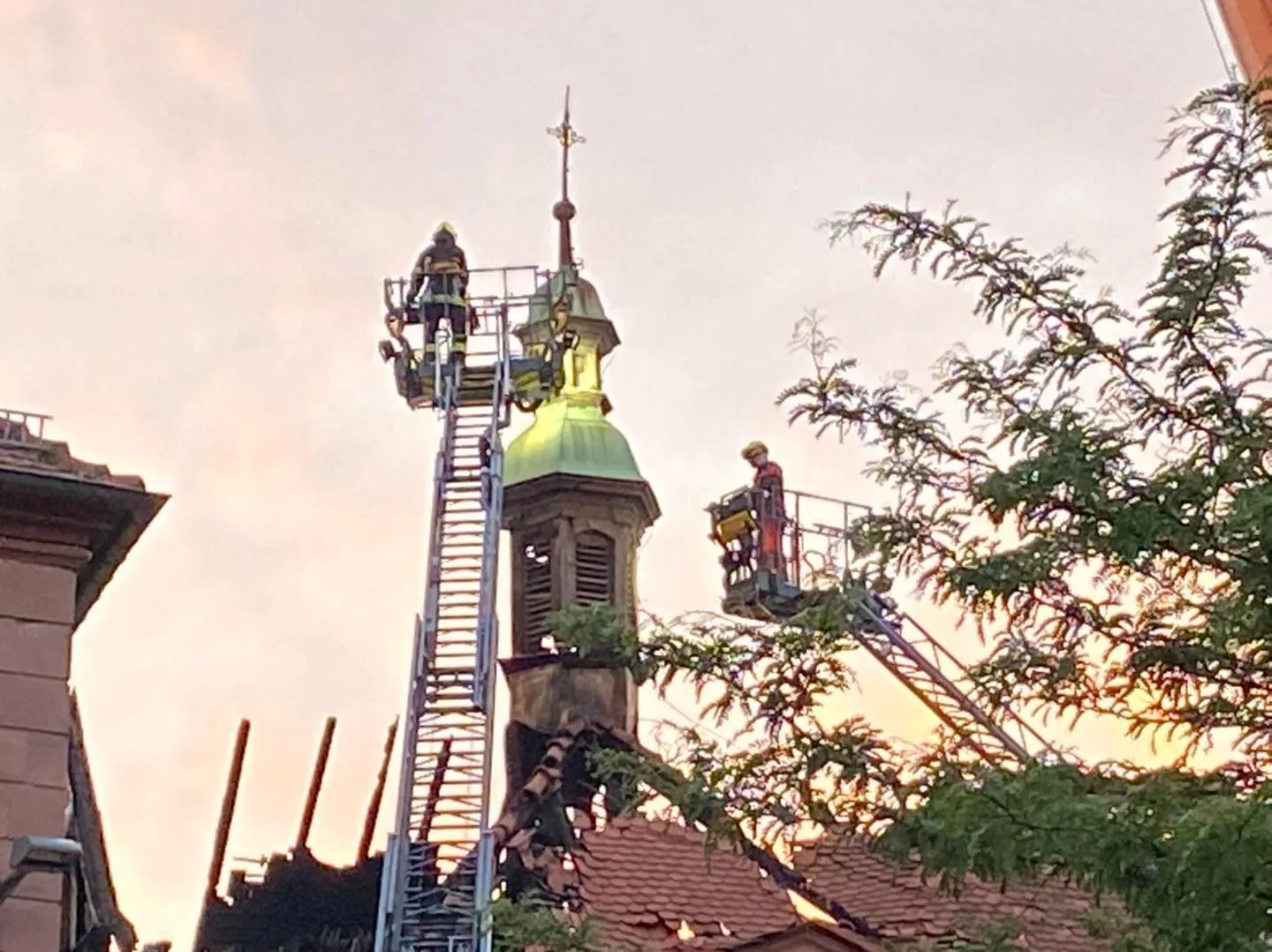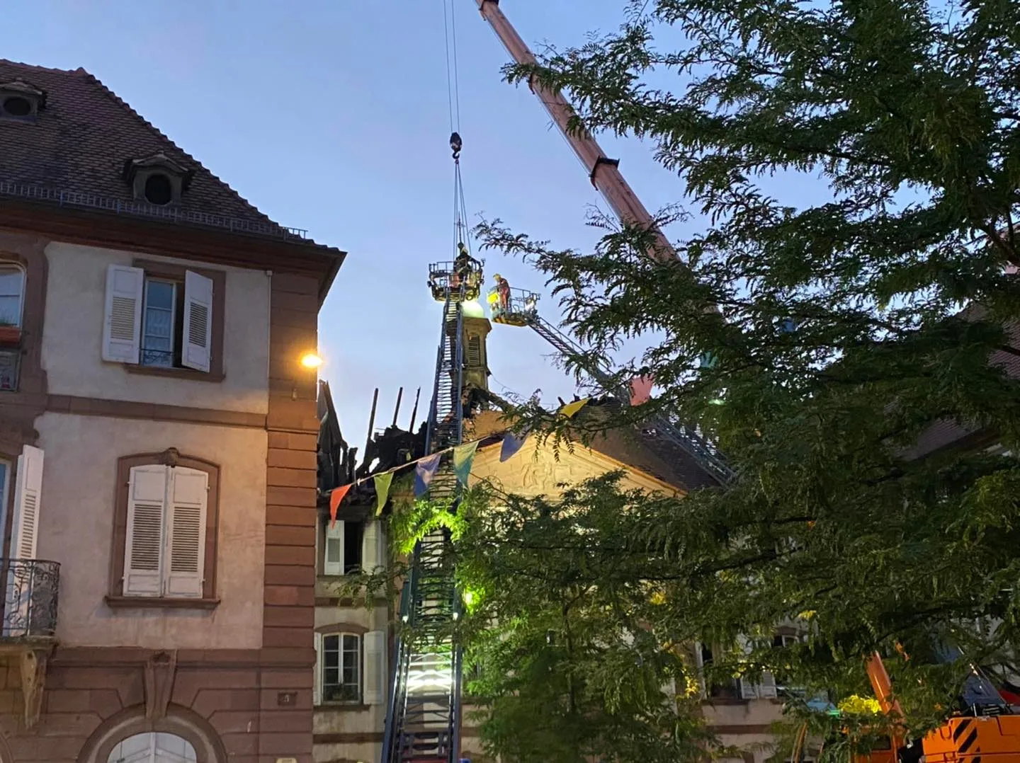 Les pompiers étaient encore présents toute la nuit à Haguenau après l’incendie hier matin d’une résidence sénior. Une personne a perdu la vie. 70 résidents ont été évacués. Et cette nuit justement les pompiers et des grutiers ont empêché l’effondrement de tout le bâtiment en retirant le clocheton de 1 500 kg qui menaçait de s’effondrer.