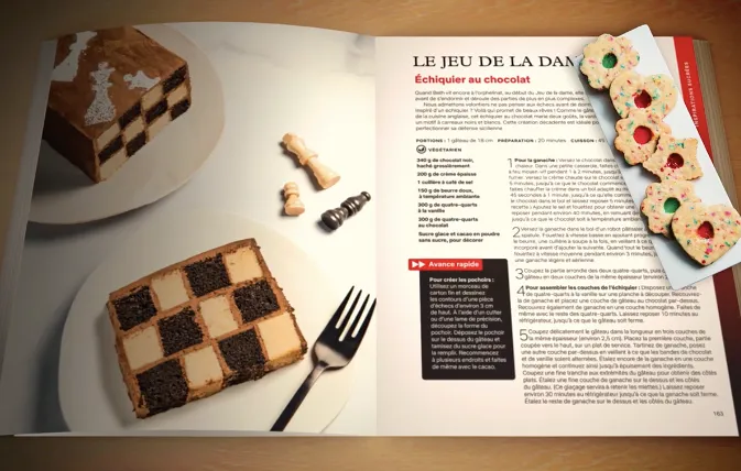 Le livre est bien réel et vous pouvez l’acquérir dès à présent (29,90€ à la FNAC par exemple). Le concept est original : Netflix a recensé 70 recettes de cuisine, salées et sucrées, mais aussi des cocktails, issus de ses séries et de ses films. Vous y retrouverez notamment l’échiquier au chocolat en l’honneur du Jeu de la Dame ou encore le bourguignon de The Witcher.