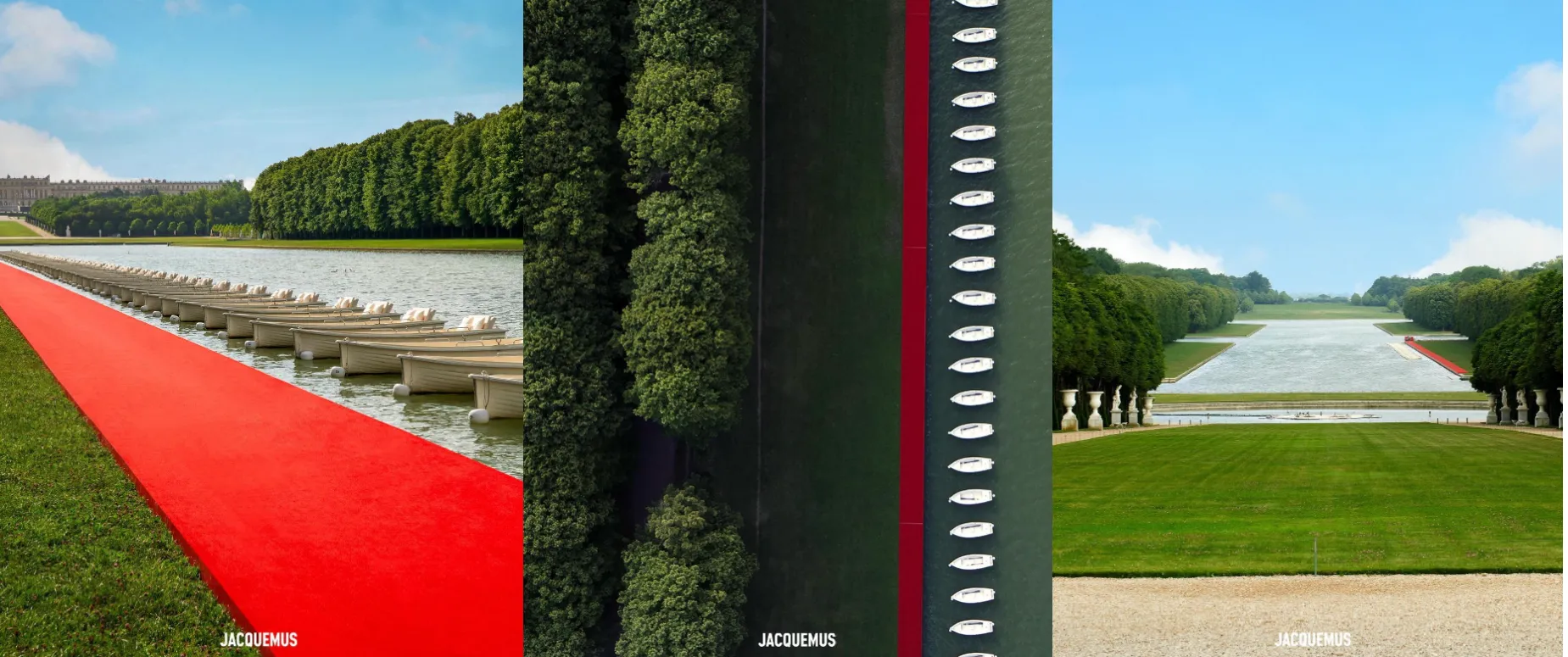 Le créateur Jacquemus s'est une fois de plus démarqué en termes de créativité en proposant un défilé sur les berges du lac du Château de Versailles où les invités étaient installés sur des barques pour assister au défilé. Un endroit inspirant calme et volupté dans un décor paisible et chargé en Histoire. Un défilé à la hauteur des attentes.