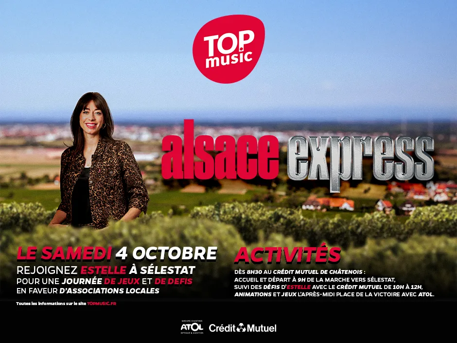 Top Music, le Crédit Mutuel et Atol s’engagent également à soutenir des associations locales à travers les défis : chaque défi relevé augmentera la cagnotte pour soutenir les associations. Le Crédit Mutuel a choisi de soutenir « Sélestat contre le cancer », l’association organise des évènements et animations festives au profit de la lutte contre le cancer. D’ailleurs « Sélestat contre le cancer » propose une Marche des lumières (de 18h à 20h30), le vendredi 10 octobre au Grubfeld à Sélestat. Par ailleurs, les associations soutenues par Atol sont « Faire ça Voir » qui informe, sensible et lutte contre les troubles et les pathologies liés à la vision (la Dyslexie, le Daltonisme, la Myopie chez les enfants, la Malvoyance et la Migraine Ophtalmique) et l'Apieda (Association Pour l'Intégration Des Enfants Déficients Auditifs) qui depuis 1986 aide les familles avec un enfant déficient auditif. L’Apieda emploie aujourd’hui deux salariés dans le Bas-Rhin qui interviennent de la maternelle à l’enseignement supérieur et lors de cessions de formation professionnelle.