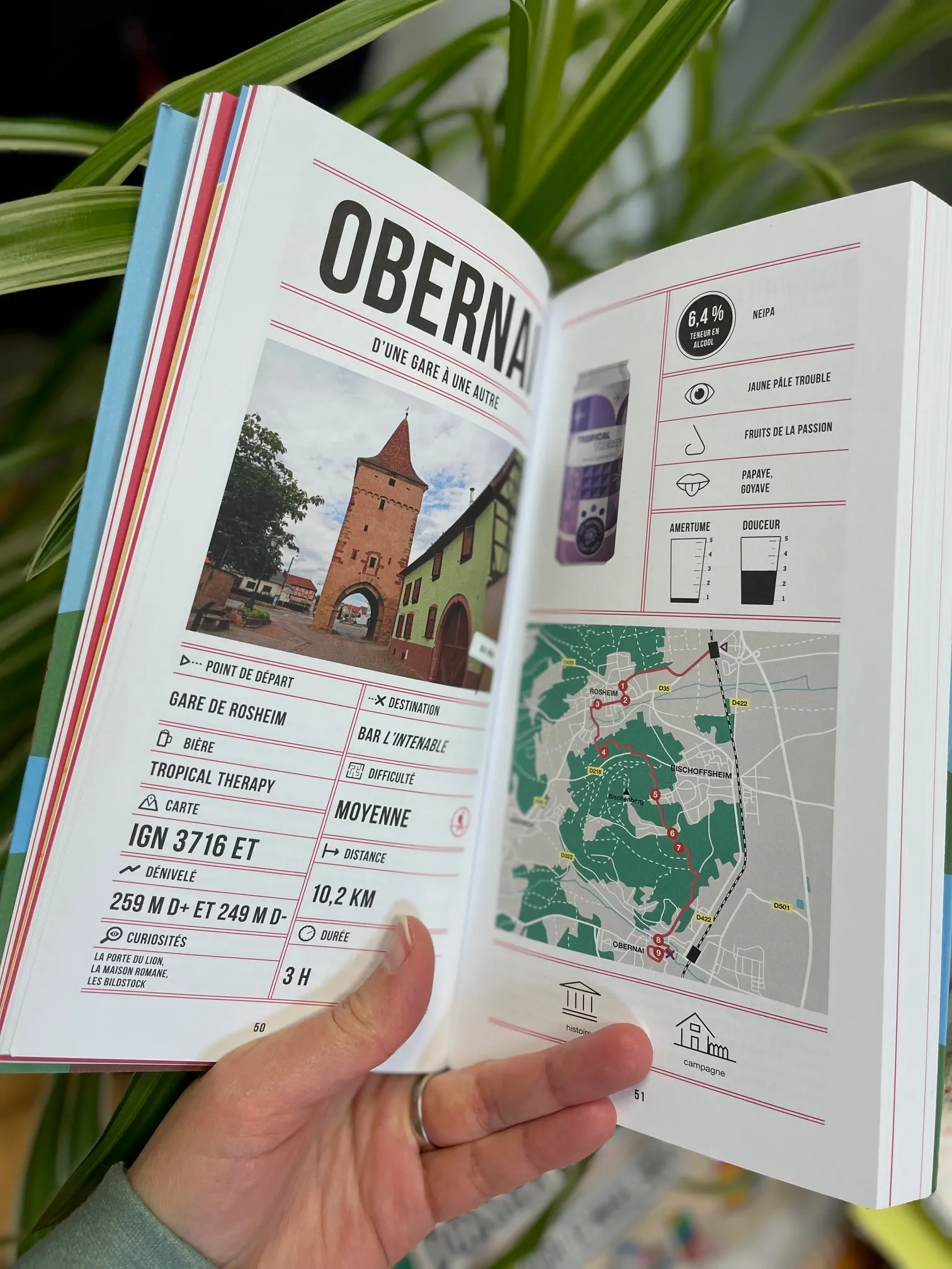 L’Alsace est à elle seule une terre brassicole ! Les micros-brasseries se multiplient. Pour en découvrir, ouvrez le nouveau guide « Randos bière Grand Est » (aux éditions Helvetiq). 40 itinéraires de randonnées sont proposés à travers le Grand Est avec à chaque fois la présentation d’une brasserie ou d’une bière (ou les deux, avec parfois même une dégustation en fin de parcours). Prenons l’exemple de la rando « D’une gare à l’autre », dont le départ se fait à la gare de Rosheim et l’arrivée à la gare d’Obernai (vous pourrez donc facilement rejoindre en train votre gare de départ). Le parcours de 10,2km (durée moyenne de 3 heures) vous fera découvrir la brasserie L’intenable et sa bière Tropical Therapy. Sur le chemin, d’autres curiosités vous seront présentées : la porte du lion (un vestige qui protégeait Rosheim), la Maison Romane (qui date de 1154 !) ou encore les bildstock (des monuments religieux où les vignerons priaient autrefois). Une belle idée de rando et de dégustation de bière ! Dans le guide « Randons bière Grand Est », 12 randonnées sont consacrées à l’Alsace.