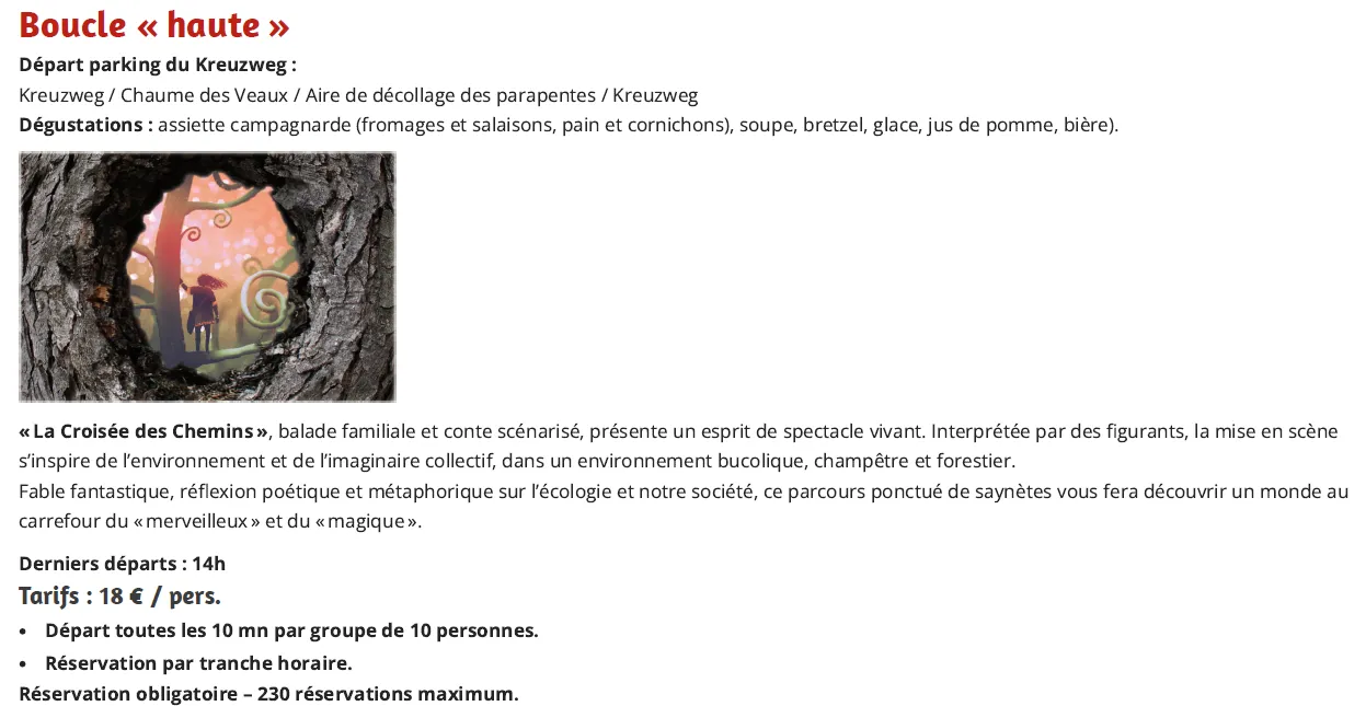 Au-delà de la création de réseaux, de voiries, de parkings, d’adduction d’eau etc. permettant les installations nouvelles, c’est ce sentier entre la vallée de Villé et le Champ du Feu, appelé l’Échappée, qui symbolise la liaison écoludique : il évoque la préservation de la biodiversité avec les actions de la Trame Verte et Bleue, ilrelie les acteurs du tourisme (producteurs locaux, gîtes, hôtels, parc d’accrobranche, site de parapente, espace des yourtes), il révèle la variation des paysages , des panneaux d’interprétation, des jeux et des espaces de repos qui rythment le cheminement.