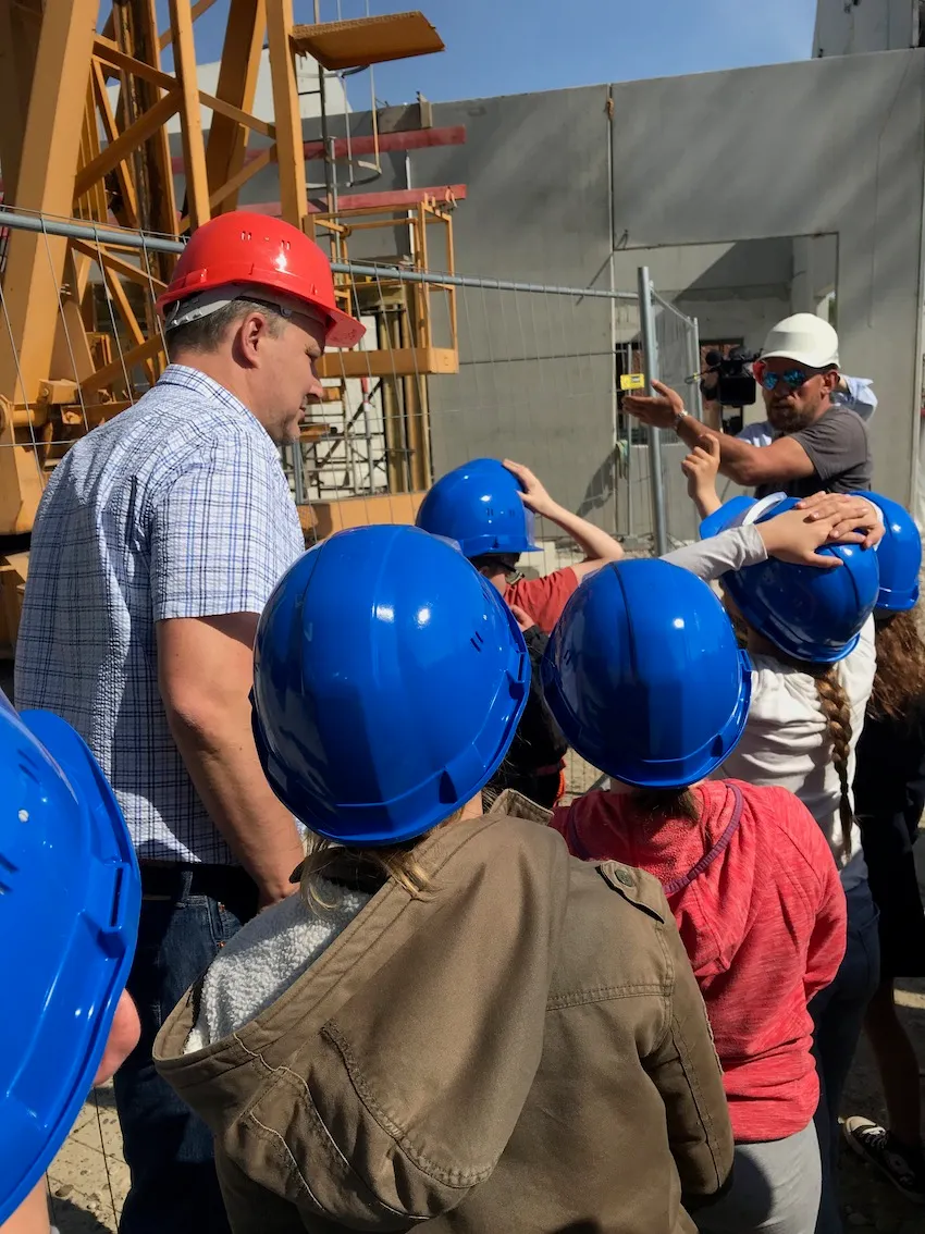 Olivier Moris montre le chantier aux enfants   Crédit : NC - Top Music