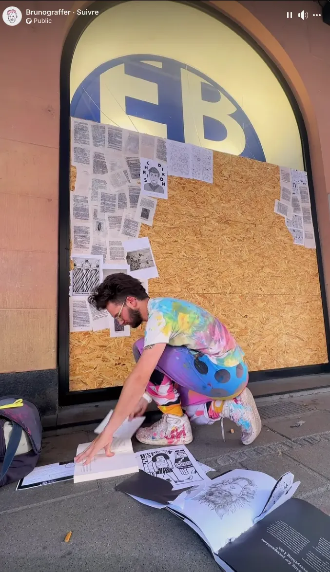 La librairie Kléber de Strasbourg taguée par Brunograffer