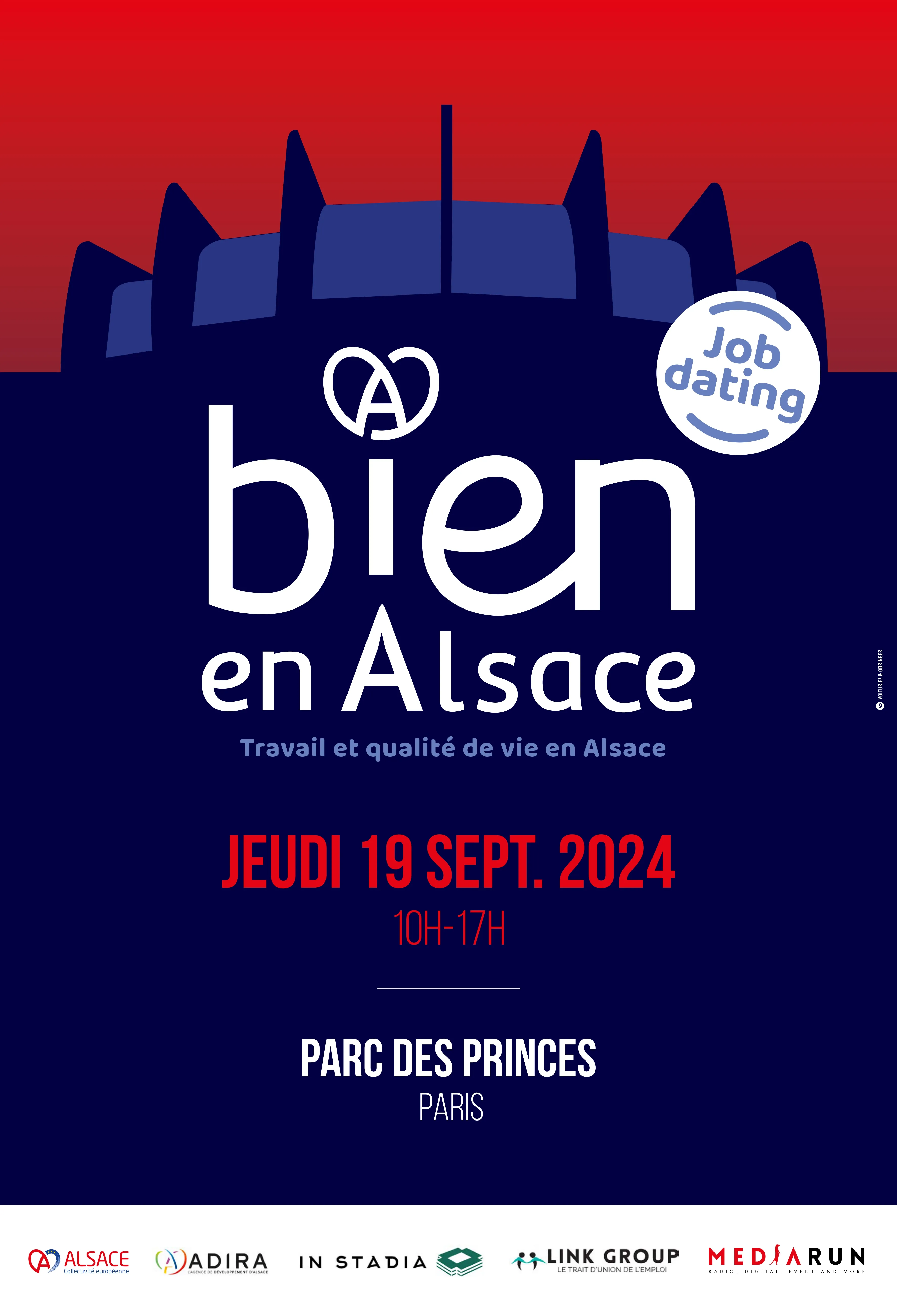 Dans le prolongement de cette marque "Bien en Alsace", un job dating aura lieu au Parc des Princes, le 19 septembre, un événement organisé par Link Group, Mediarun et In Stadia, en partenariat avec l'Adira. “Nous avons la chance d'être une région avec beaucoup d'entreprises dont de nombreuses industries. On est en situation de plein-emploi avec des profils d’experts de plus en plus difficiles à trouver, on ne pourra pas tous les trouver sur notre territoire. Il faut aller les chercher ailleurs. L’idée, c’est d’emmener de belles PME et entreprises alsaciennes à Paris, dans un endroit mythique comme le Parc des princes, pour qu’on puisse montrer ensemble de superbes opportunités de carrière dans notre environnement alsacien où l'équilibre vie privée, vie professionnelle est bien là, et cet équilibre est bien meilleur que dans une grande ville comme Paris”, précise Pascal Wespiser, président de Link Group.