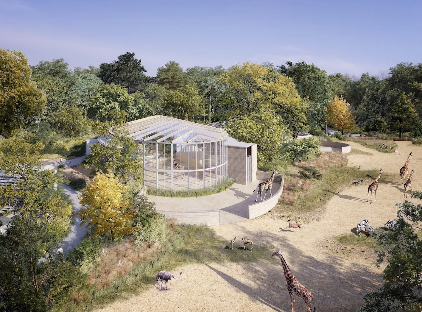 Le bâtiment des girafes fera 12 mètres de hauteur et permetra d'accueillir jusqu'à 10 girafes. Les girafes ont un espace intérieur de 400 m2 et partageront avec les autres animaux un espace extérieur de 8 000 m2. / @Top Music - CR