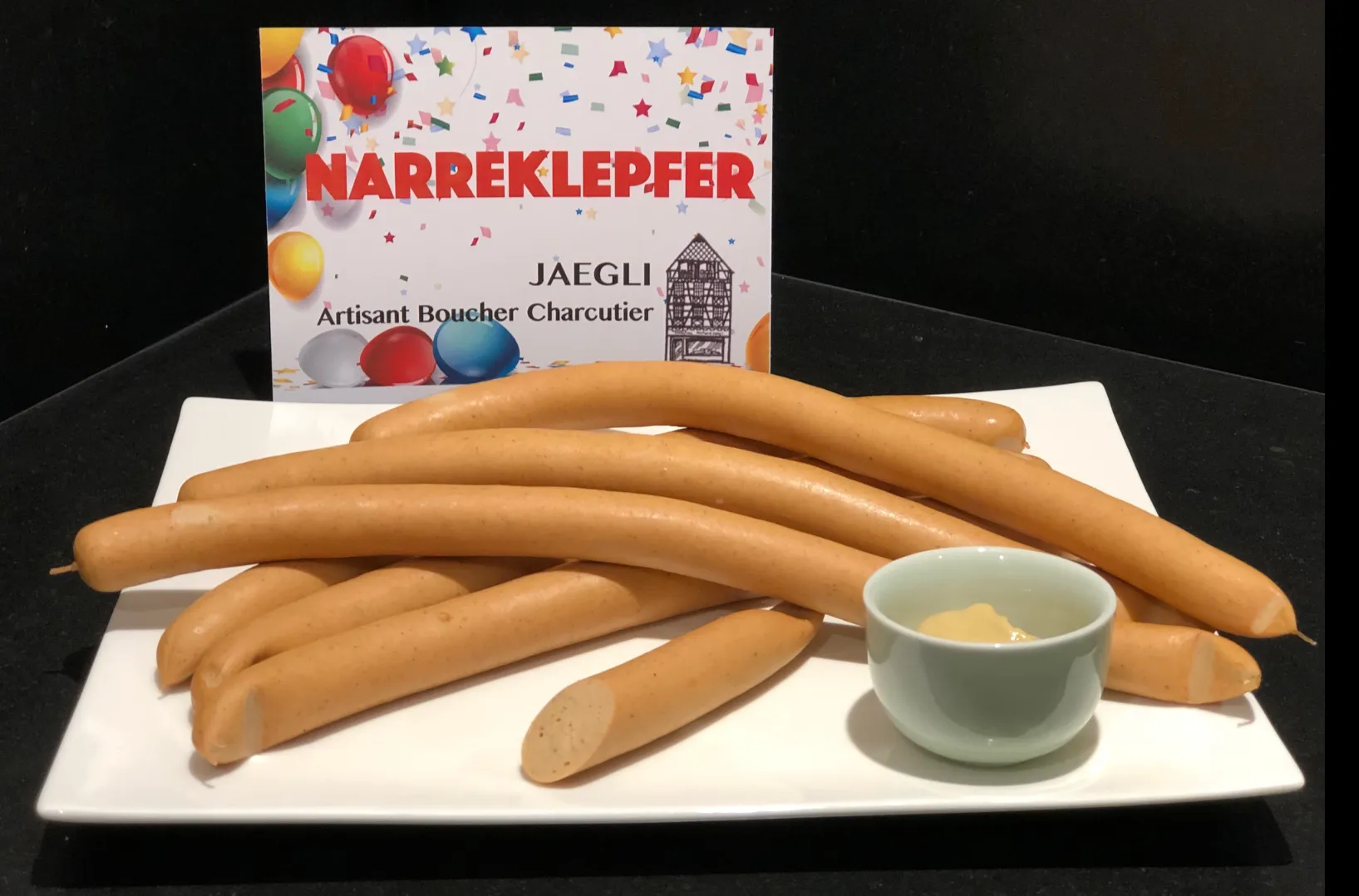 En cette pleine période des carnavals, on mange des beignets bien sûr mais aussi des saucisses de carnaval. A Sélestat, il y a la vraie, l’unique, la fameuse Narreklepfer.
