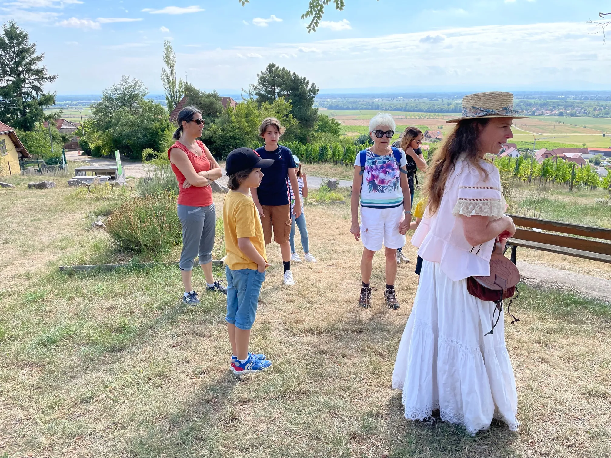 Je ne saurais vous raconter ici toutes les histoires que notre herboriste et Monsieur Lézard nous ont contées mais sachez que pendant la balade vous entendrez parler de gentils elfes, des Schieweschlauje (ces disques enflammés lancés depuis le rocher des celtes de Dieffenthal), de la légende du géant Schletto qui a fondé Sélestat mais aussi des rochers « Hansel et Gretel » ou encore des géants qui jouent à la pétanque près de l’église de Dieffenthal. Même si Monsieur Lézard - en vacances - voulait retourner « lézarder sur un mur », il nous a raconté de belles histoires. «La moindre pierre pétrifiée peut cacher une créature ou une légende », nous rappelle notre « herboriste intemporelle » avant que la balade ne se termine.