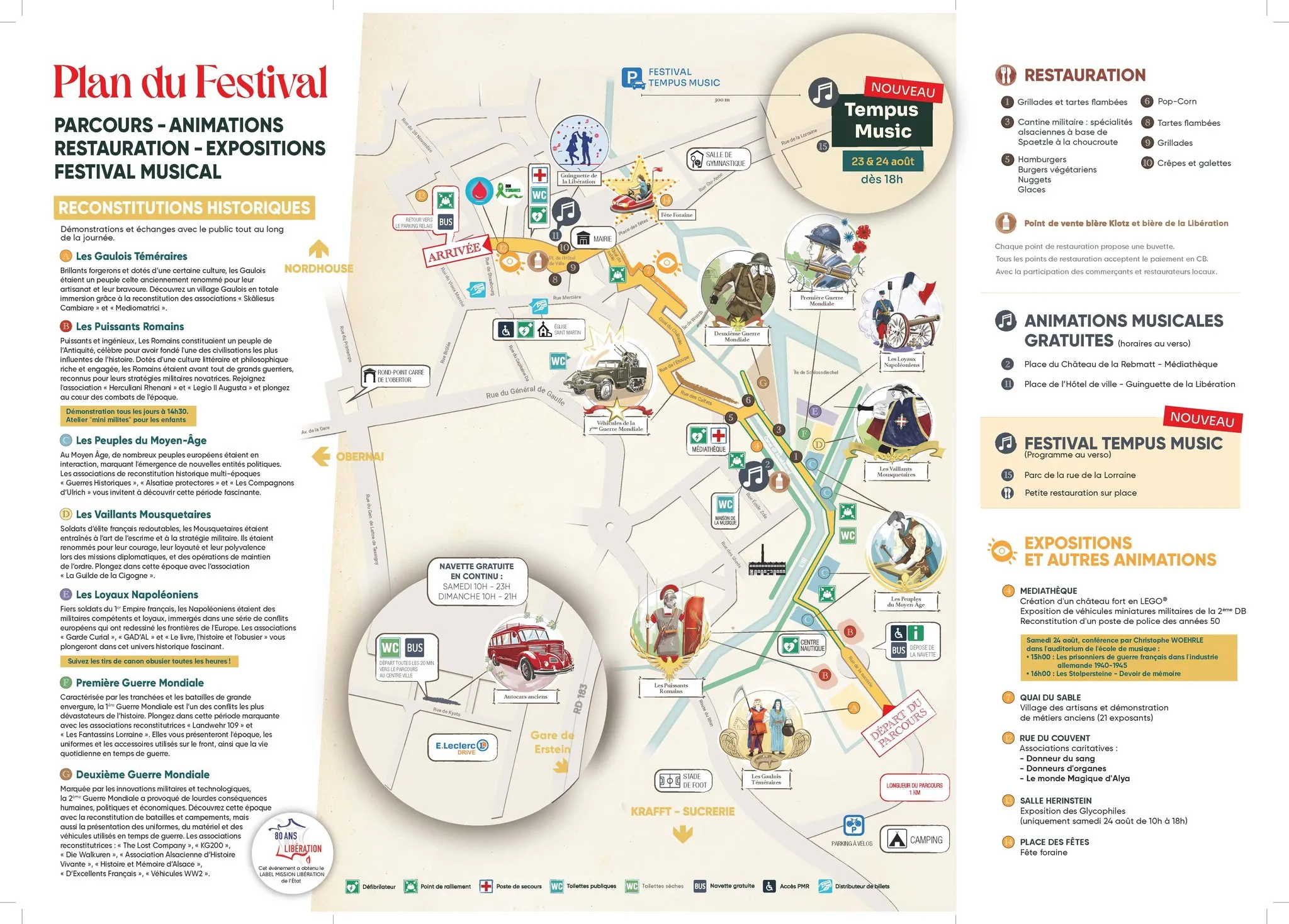 Il ne faut pas oublier l’essence même du festival Tempus, l’Histoire. La ville d’Erstein va s’illuminer aux couleurs bleu, blanc et rouge pour célébrer les 80 ans de la libération. Des associations de reconstitution historique seront là pour expliquer plusieurs époques, aux petits comme aux grands. Vous pourrez vous plonger dans l’époque des Mousquetaires et les loyaux Napoléoniens (avec des tirs de canon obusier toutes les heures !). Bon à savoir, l’accès au festival historique est gratuit.