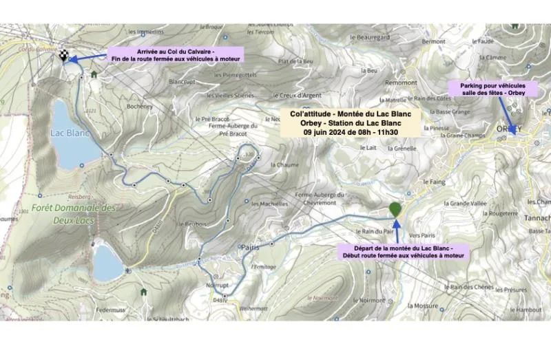Ce n’est pas une course (il n’y a pas de chrono), c’est tout simplement du plaisir qui est proposé ce dimanche 9 juin de 8h à 11h30, entre Orbey et le Lac Blanc. La route sera dédiée aux deux roues (vélo avec sous assistance électrique, vélo de route, VTT ou même Gravel Bike) entre les Basses-Huttes à Orbey et le Col du Calvaire. Col’Attitude est un évènement sportif et festif.