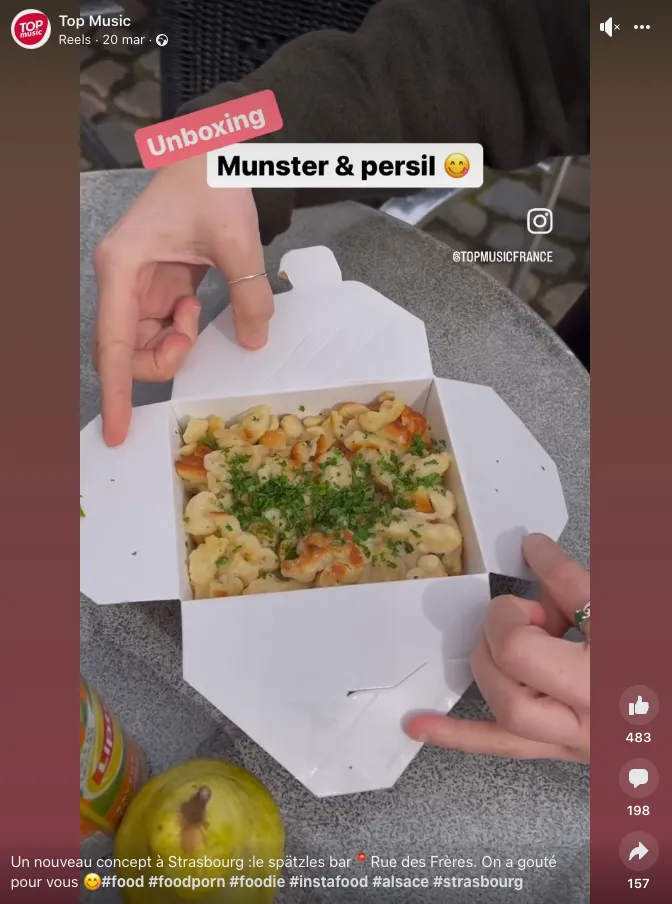 L'idée est géniale car locale. La box est généreuse et on compose notre box à notre goût. J'ai pris les spaezles sauce champignons avec lardons et persil. Les spaetzle sont bons, la sauce peut-être un peu fade à mon goût. Bon plan pour les étudiants avec leur menu spécial. En revanche, pour ceux qui ne seraient pas étudiants, le rapport qualité prix est moyen. 6 euros la box spaetzle nature +3 euros la sauce +1 euros les lardons. On a quand même le droit d'ajouter persil oignons frits ou parmesan sans supplément.