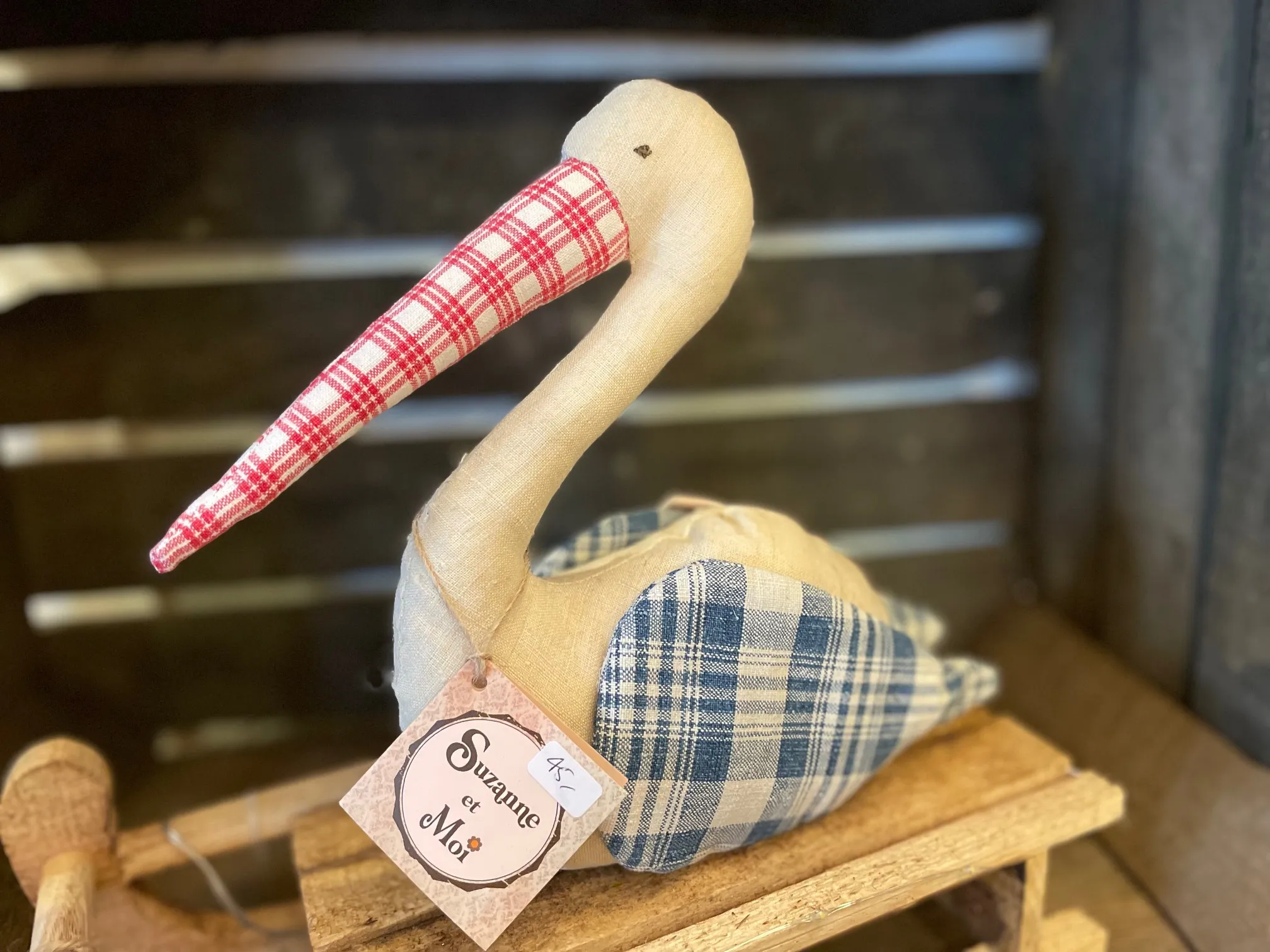 Je commence d’abord mes emplettes pour les femmes de ma vie. A Villé a ouvert mi-octobre l’atelier-boutique « De fil et d’osier ». Emilie est vannière et Virginie couturière. Elles proposent tout un tas de jolis produits : on ne sait plus où donner de la tête. Elles ont même crée des produits qui marient vannerie et tissus. Le best-seller d’Emilie, ce sont les fleurs en osier (osier qui a poussé en Haute-Marne). Pour Virginie le best-seller est la cigogne en tissu (avec du vieux lin et du kelsch chiné à droite à gauche), à poser (45€) ou à accrocher (98€).