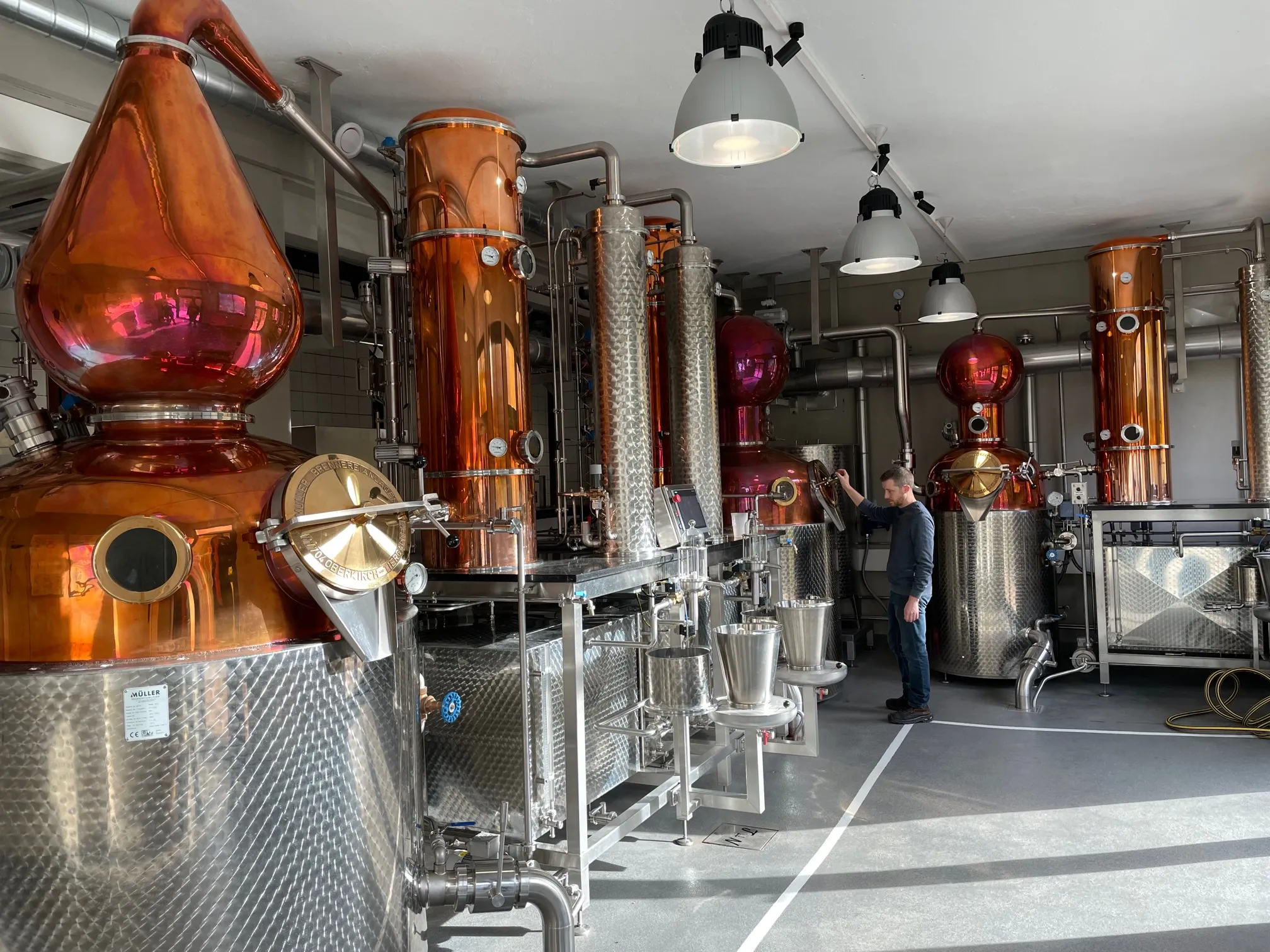 Je recherchais un produit authentique, traditionnel de la Vallée de Villé pour mon frère quand j’ai pensé à la Distillerie Nusbaumer à Steige. Cette distillerie de moyenne montagne utilise de l’eau de source et beaucoup de plantes pour ses 50 produits (eaux de vie, liqueurs et crèmes). Les trois alambics de la distillerie viennent d’être changés (vous pourrez les voir lors du nouveau circuit de visite, plus pédagogique) : la capacité de production a été doublée et en même temps la consommation énergétique a été divisée par deux. Nicolas Lombard, le dirigeant, m’explique que « l’entreprise est indépendante et autonome, labellisée entreprise du patrimoine vivant ». Il a aussi développé des produits en partenariat avec des hôtels alsaciens comme La Chenaudière à Colroy-la-Roche et 48 Degrés Nord à Breitenbach.