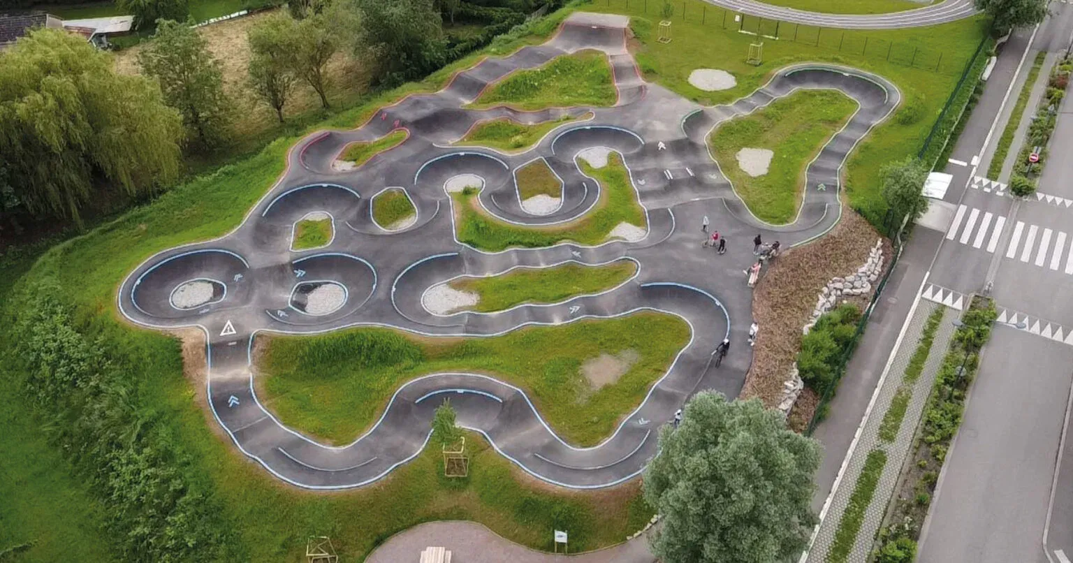Baldersheim : le pumptrack se trouve à l’arrière du complexe sportif. La piste forme plusieurs boucles et s'étend sur une surface de 1600 m². Elle est adaptée à tous les niveaux.