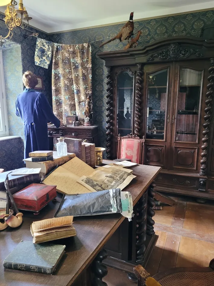 Le château avant et après rénovation (ici le cabinet de curiosités) / @Association de Gestion du Parc Textile de Wesserling
