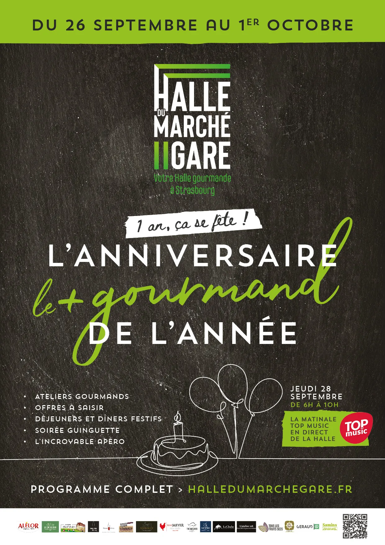 Il y a un an, la Halle du marché Gare ouvrait ses portes à Strasbourg, près de Ikea. Avec ses 1000m2 et ses 14 commerçants et artisans locaux, ce nouveau lieu a su s'imposer comme un marché couvert dans lequel on peut faire ses courses mais aussi se ravitailler lors de déjeuners amicaux et professionels. Pour fêter son premier anniversaire, l'équipe de la matinale On Est Tous Debout, Charly, Estelle, Martin et Nono seront en direct dès 6h pour une émission exceptionnelle jusqu'à 10h.