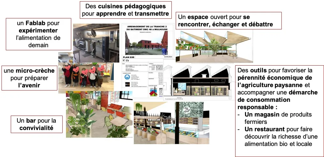 « La Brique 48 » devrait ouvrir d’ici 2023 dans un des bâtiments (le bâtiment 48 !) de l’ancien site DMC de Mulhouse. Ce lieu hybride aura pour fil conducteur les circuits courts, avec un magasin de produits locaux, un restaurant, un bar, une cuisine pédagogique, un Fablab culinaire, une micro-crèche, etc.