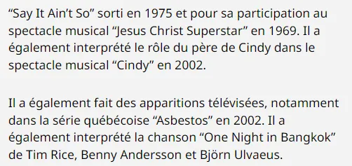 Signé à 17 ans sur le label EMI, il a 20 ans quand il joue son premier rôle majeur au cinéma (on le verra notamment dans « Sunday, Bloody Sunday » en 1971) et brûle les planches au théâtre dans « Hair » et « Jésus Christ Superstar ».